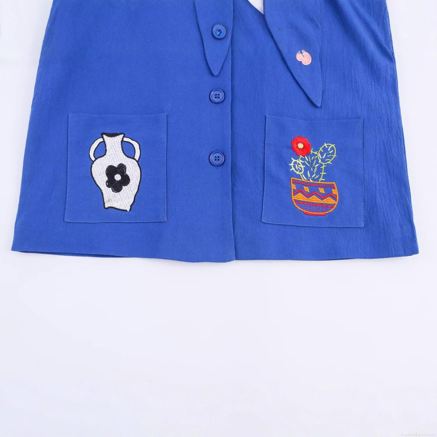 Cactus, Candy, Strawberry, Vase, Pocket, Embroidery, Flowers, Lace, Single-breasted