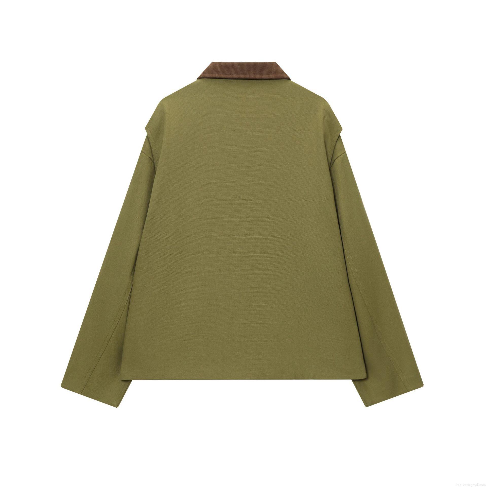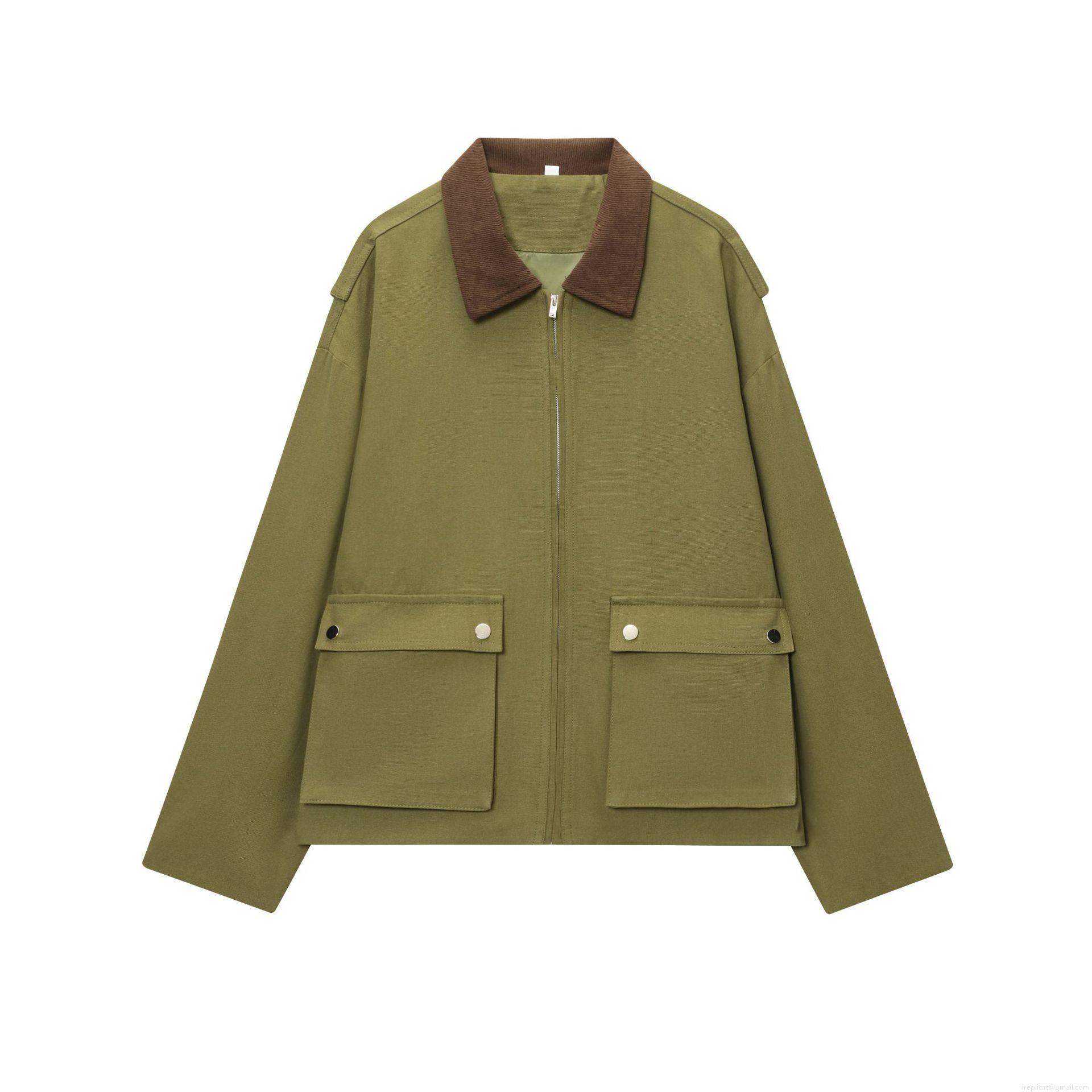 • Women's Vintage Canvas Utility Jacket With Contrast Corduroy Collar Casual Long Sleeve Full Zip Loose Workwear Cargo Coat Outwear