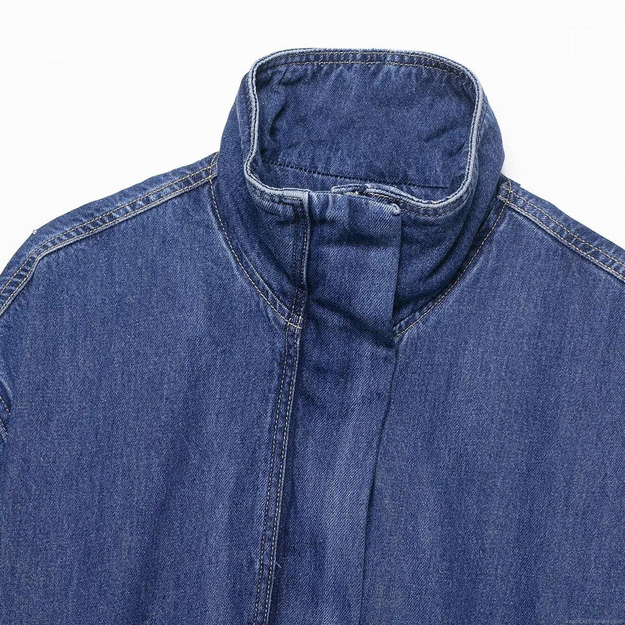 • Women's Vintage Denim Jacket Loose Short Stand Collar Washed Blue Jean Coat For Autumn Casual Streetwear Outwear