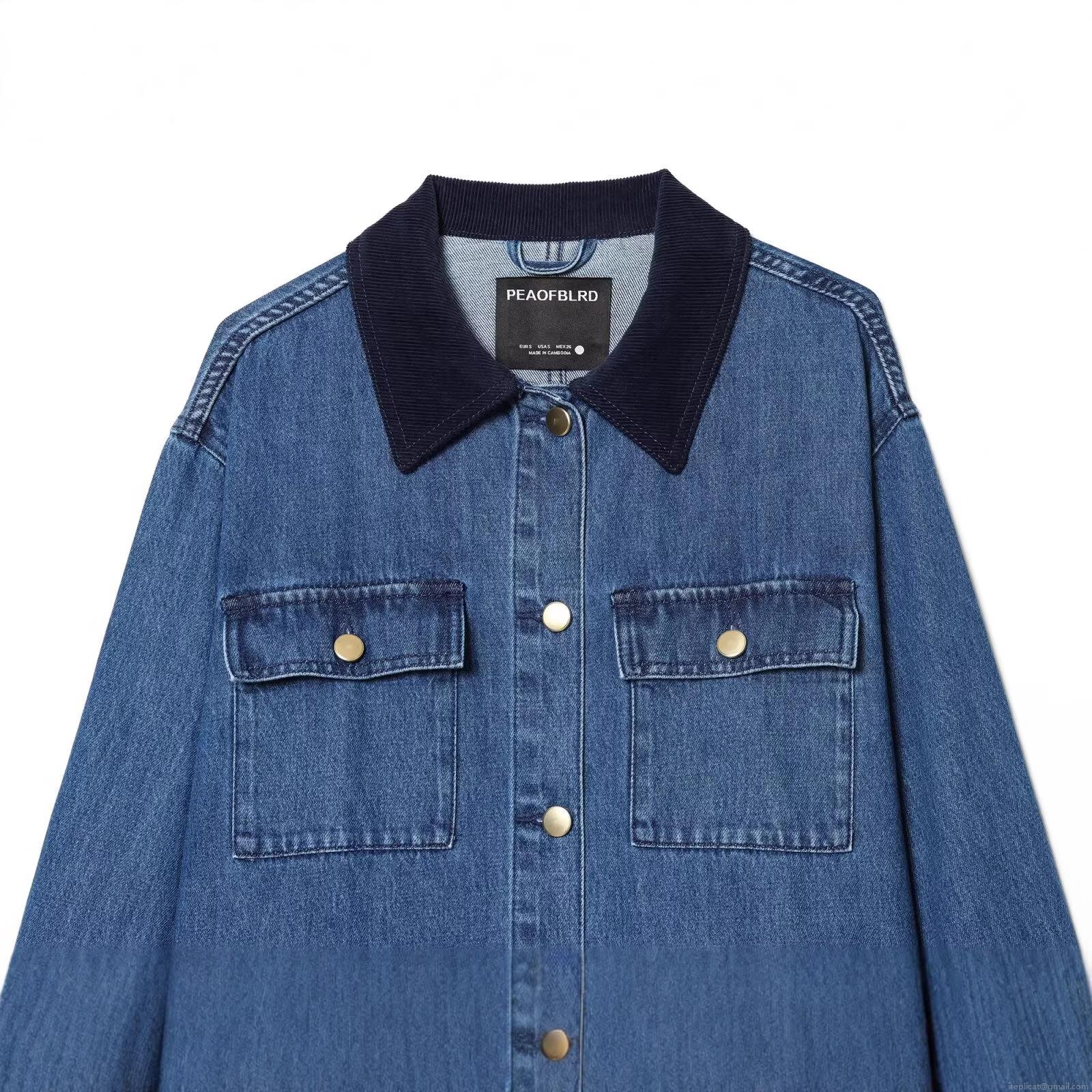 • Women's Vintage Denim Jacket With Spliced Corduroy Collar Long Sleeve Button Down Wash Denim Coat With Pockets Casual Streetwear Outerwear For Women
