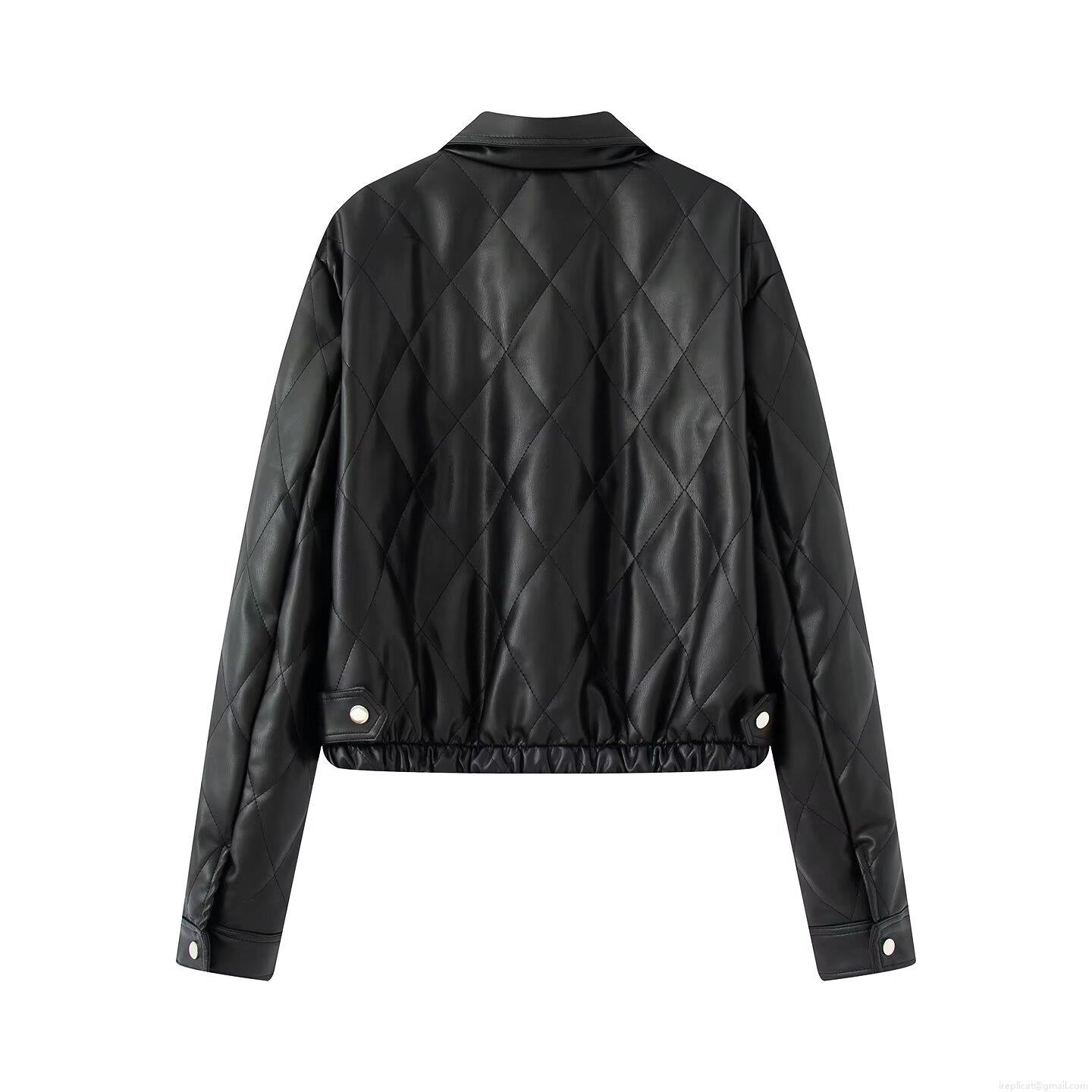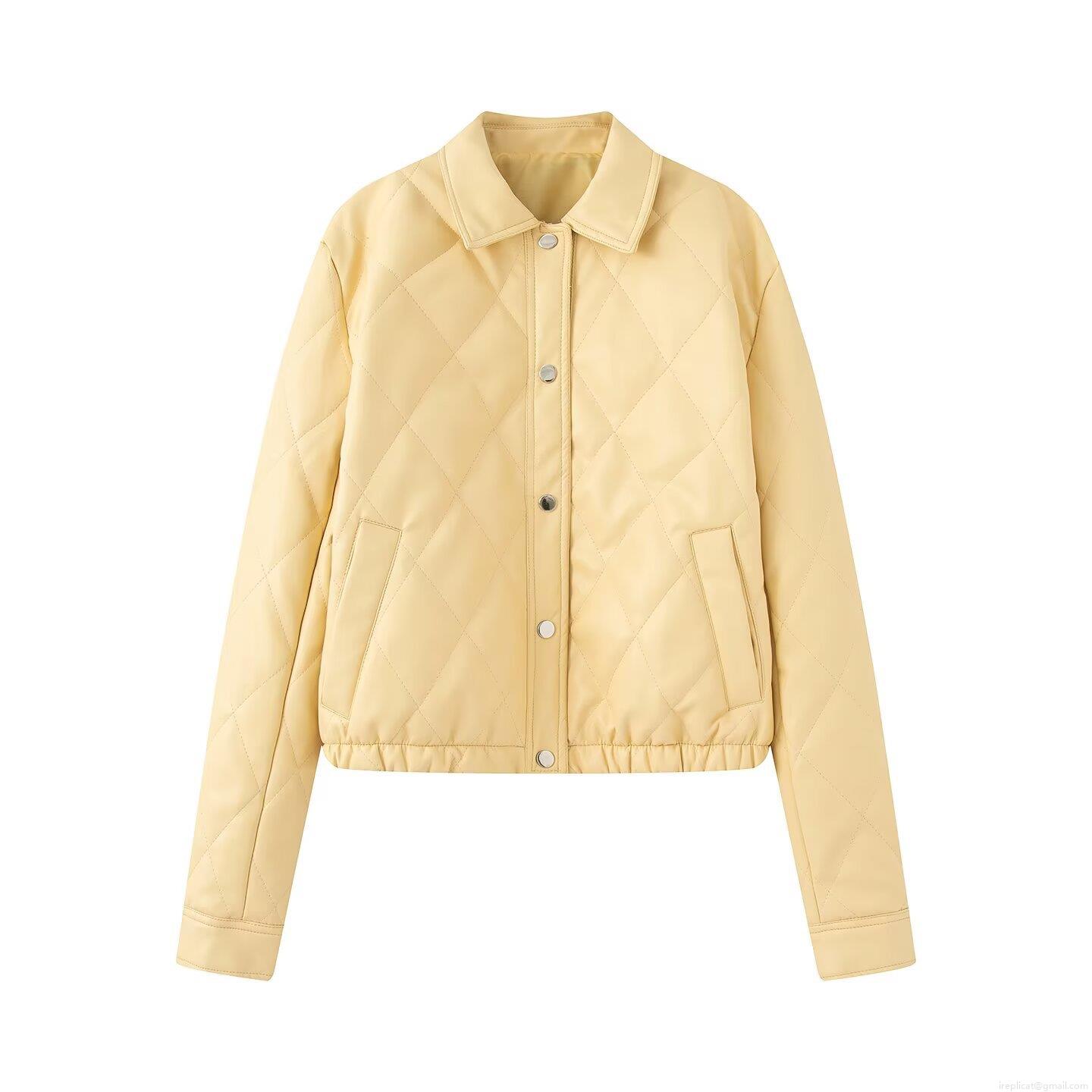 • Women's Vintage Diamond Quilted PU Leather Jacket Lapel Short Cotton Padded Coat Single Breasted Warm Puffer Outerwear Streetwear For Autumn Winter