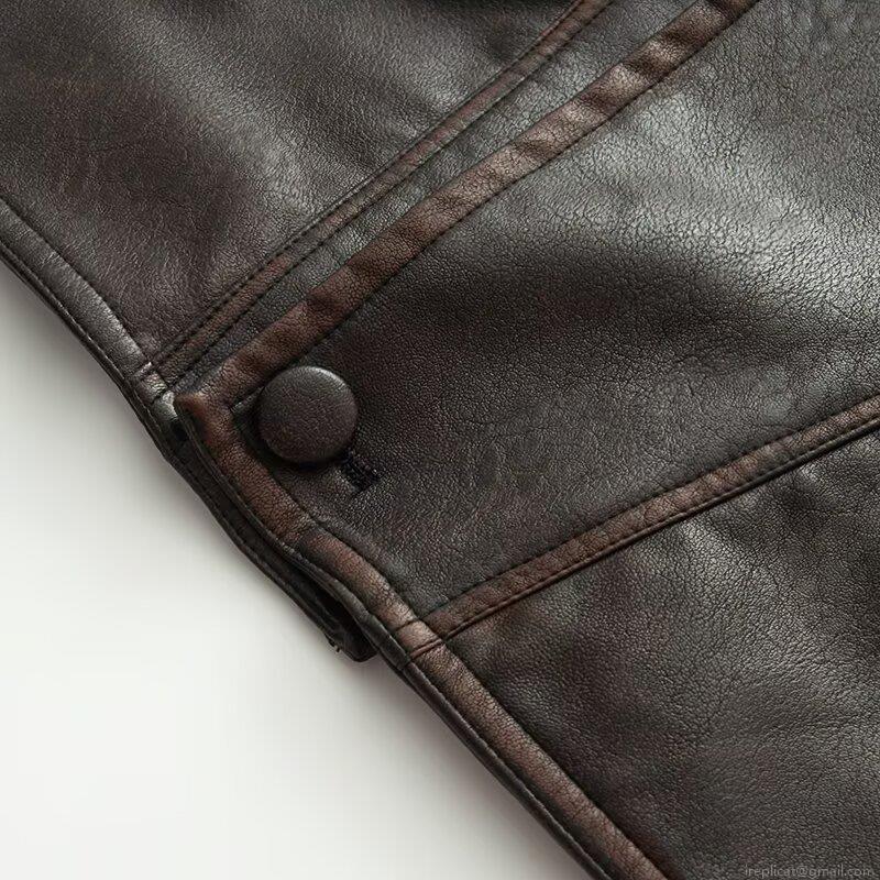 • Women's Vintage Distressed Faux Leather Biker Jacket Retro PU Leather Lapel Button Up Outerwear Casual Loose Long Sleeve Coat For Streetwear Fall