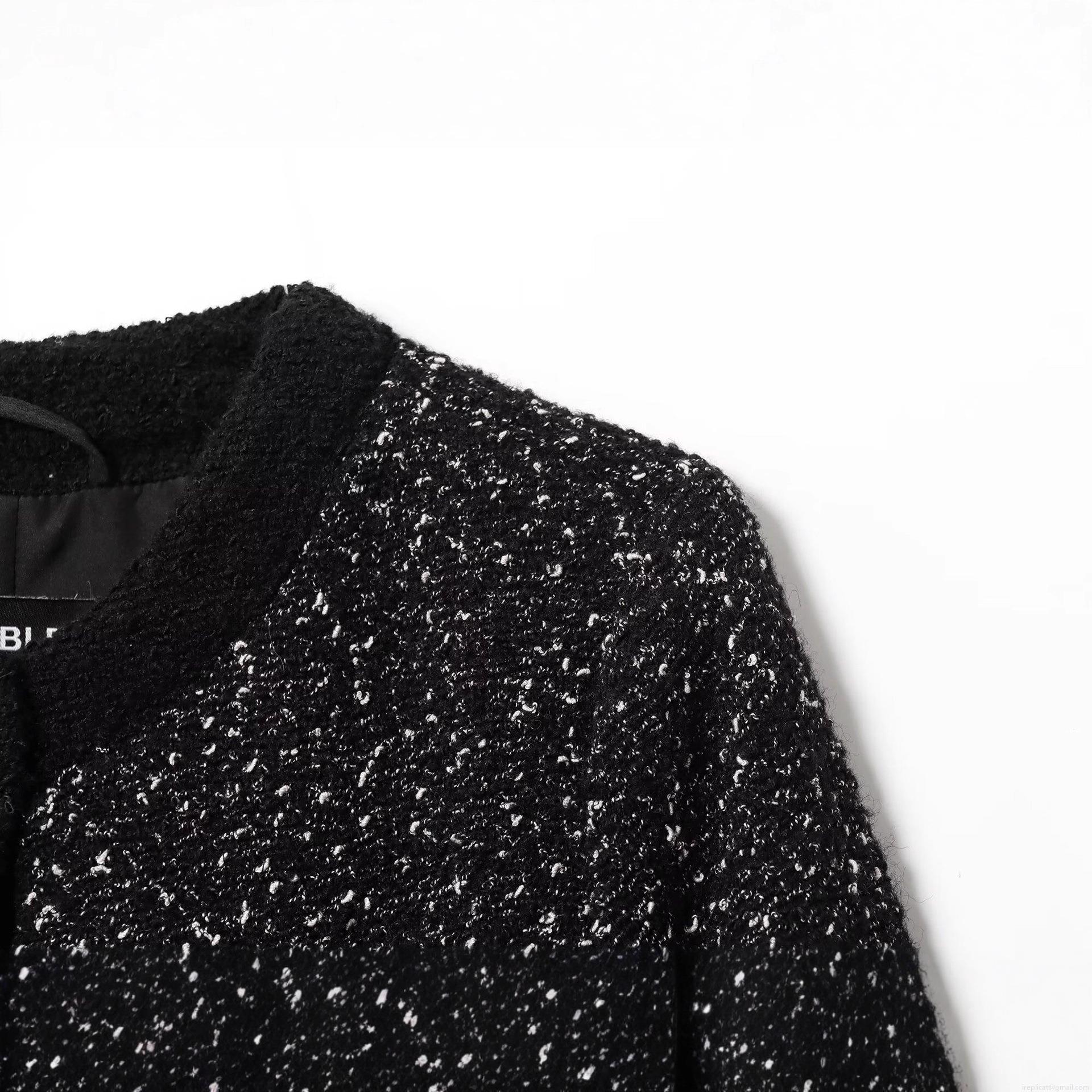 Splice, Texture, Black And White Mixed Colors, Collage, Tweed, Metal Buckle, Single-breasted