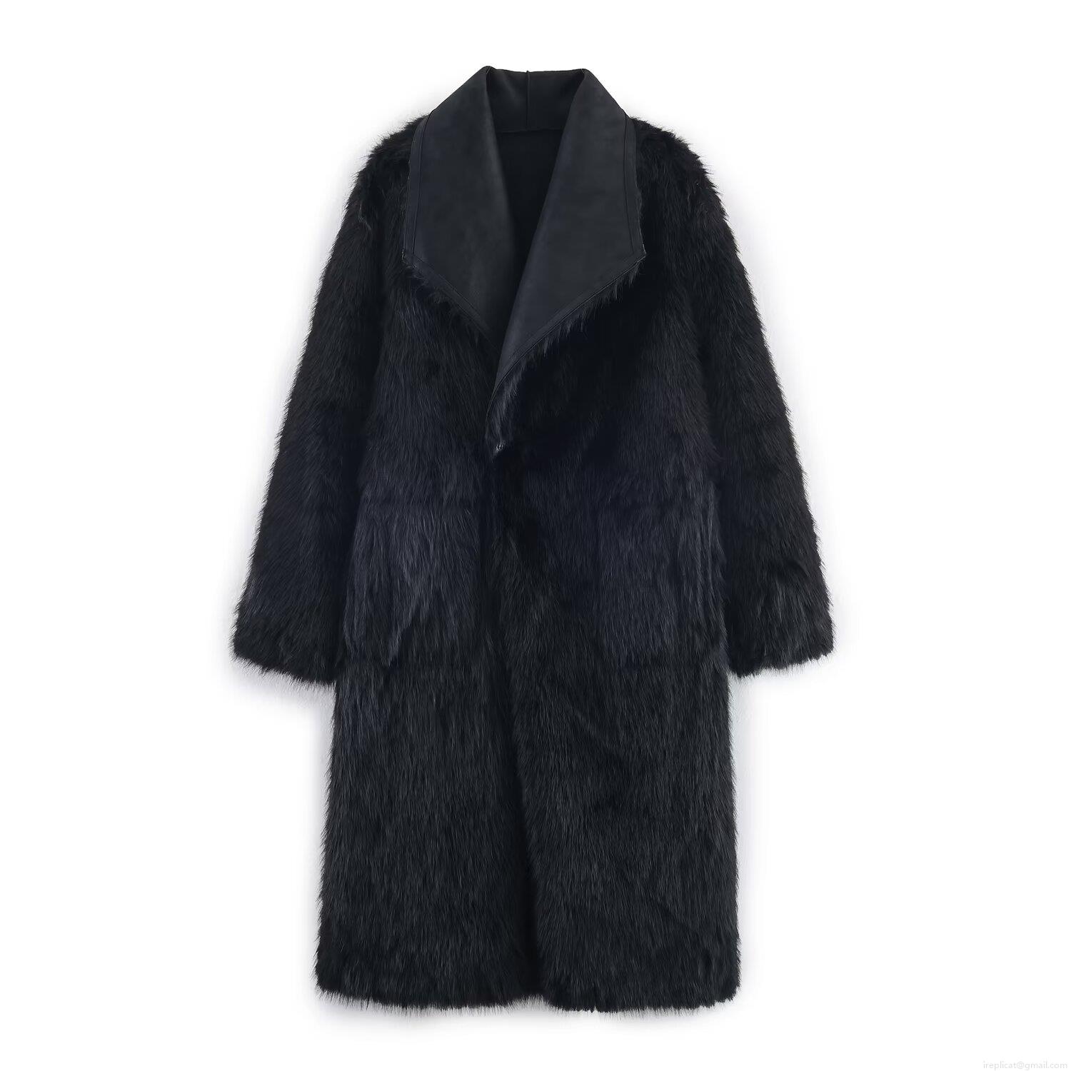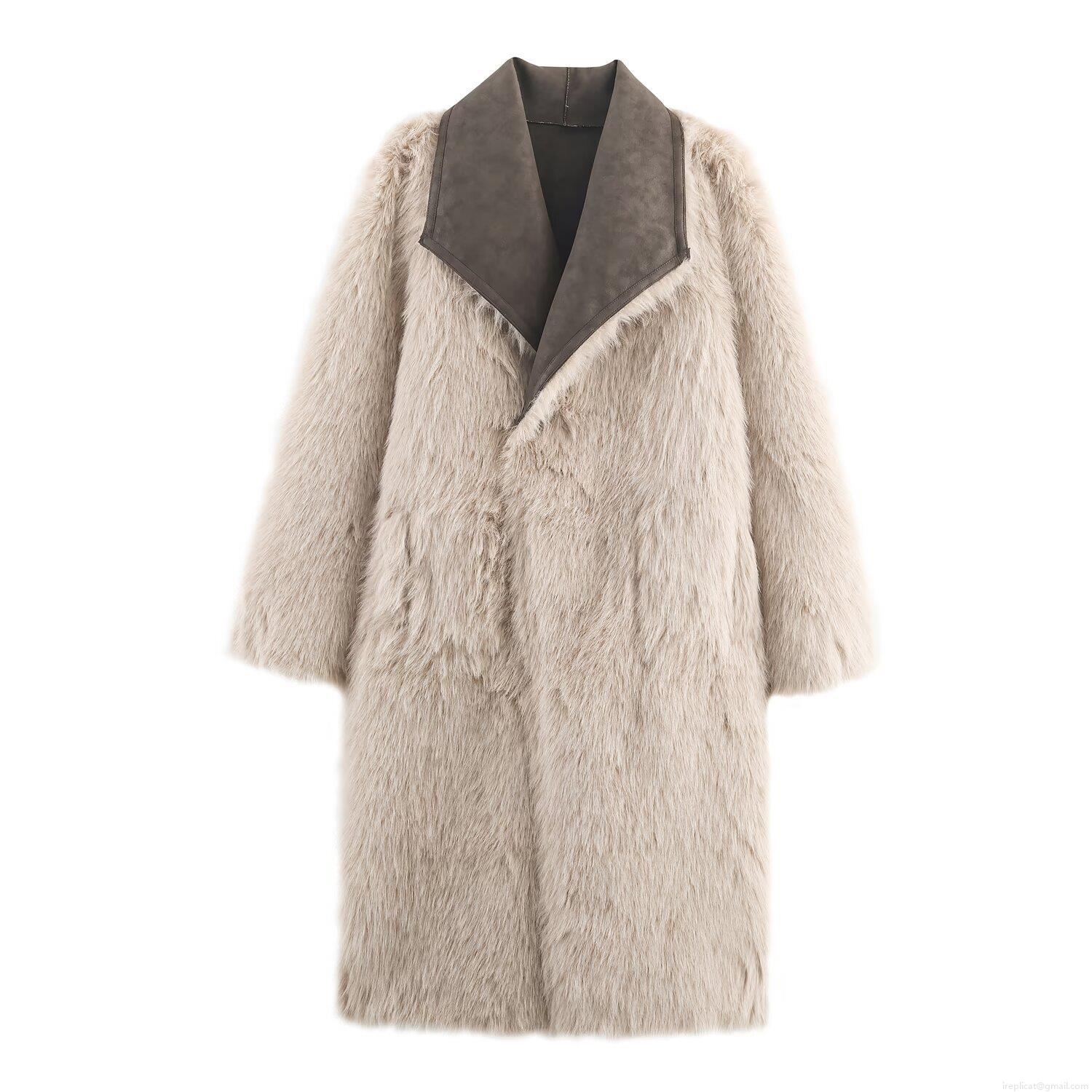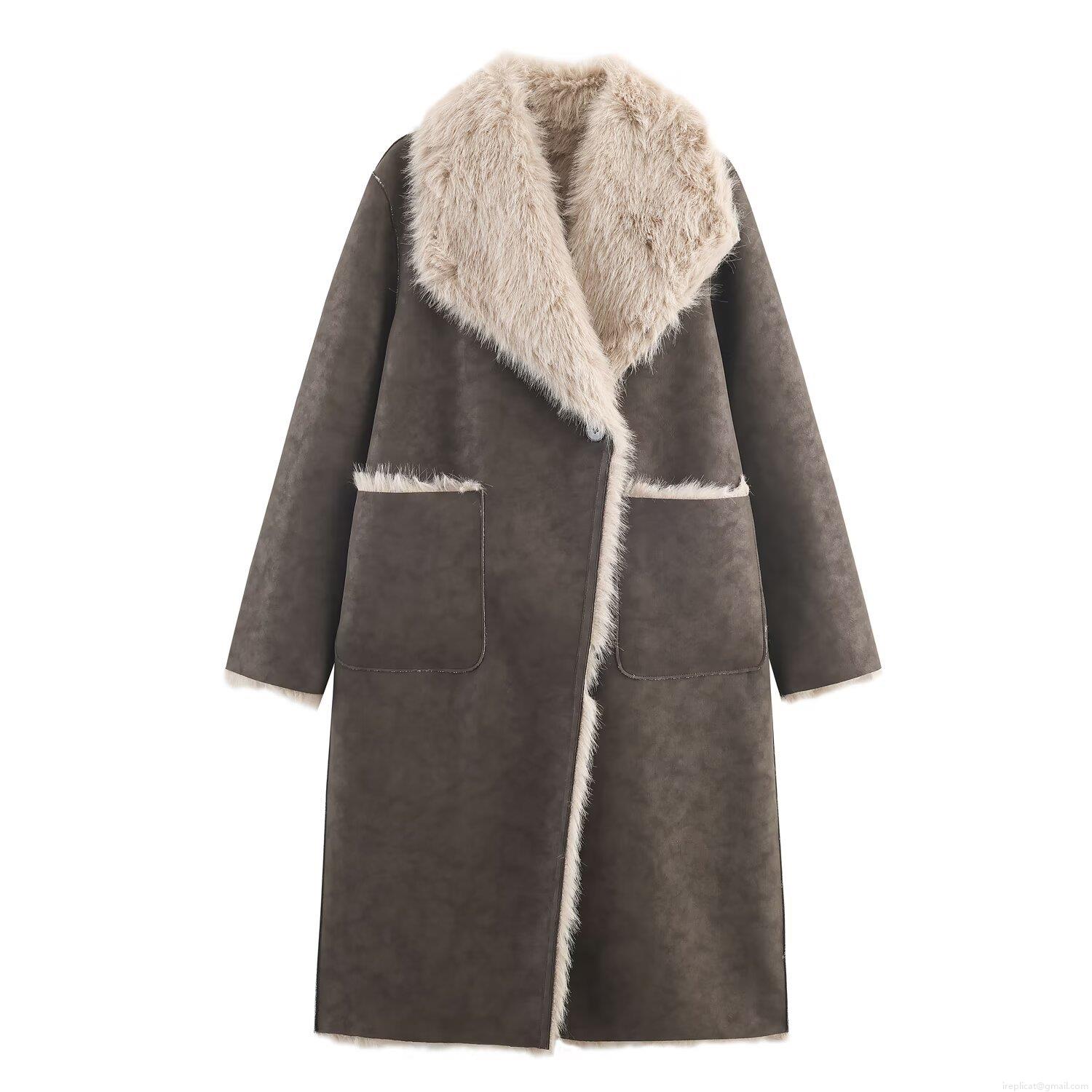 • Women's Vintage European Streetwear Faux Shearling Long Coat Warm Thick Polyester Suede Faux Fur Trimmed Double-Sided Winter Jacket With Pockets