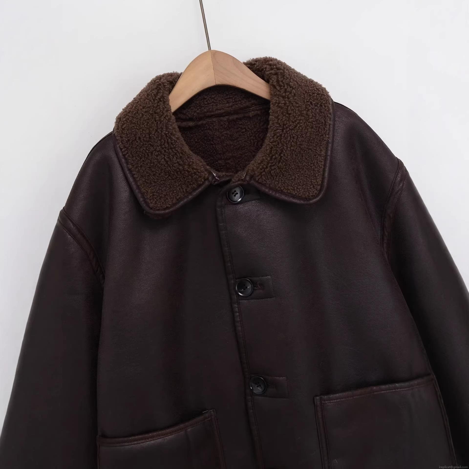 • Women's Vintage Faux Fur Shearling Jacket Reversible Double Sided Faux Leather Fleece Coat Single Breasted Lapel Winter Outerwear Streetwear