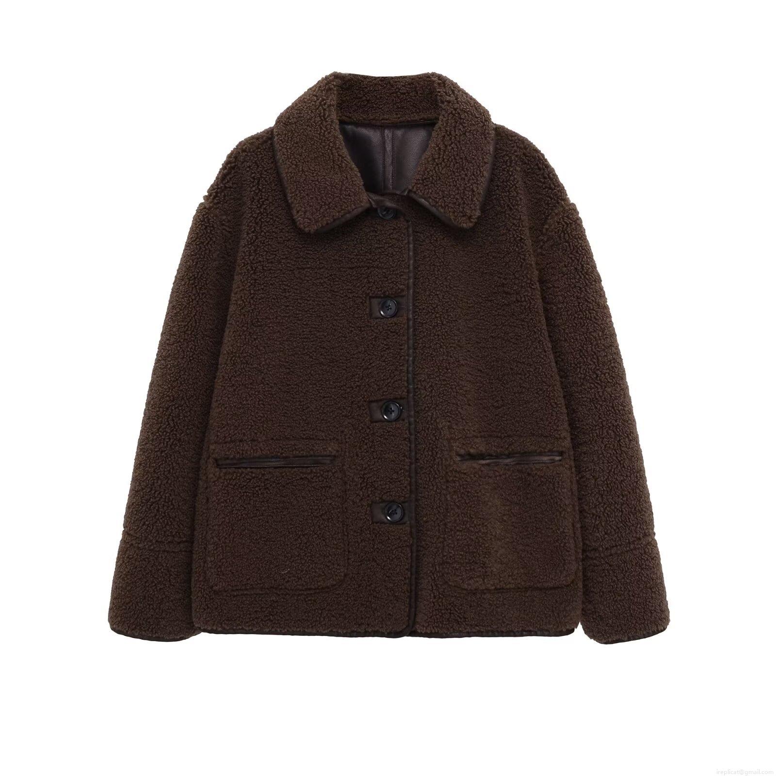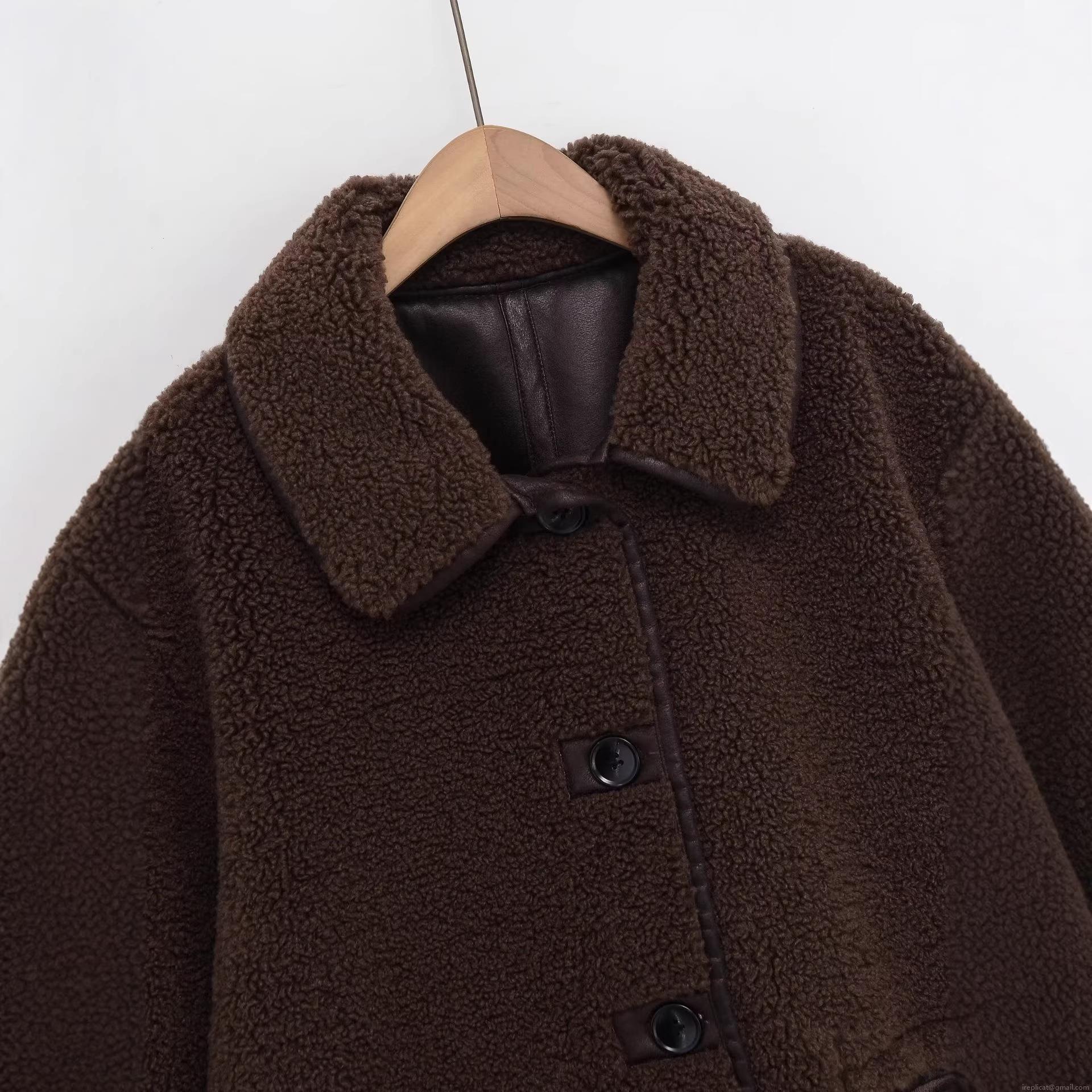 Women's Vintage Faux Fur Shearling Jacket Reversible Double Sided Faux Leather Fleece Coat Single Breasted Lapel Winter Outerwear Streetwear