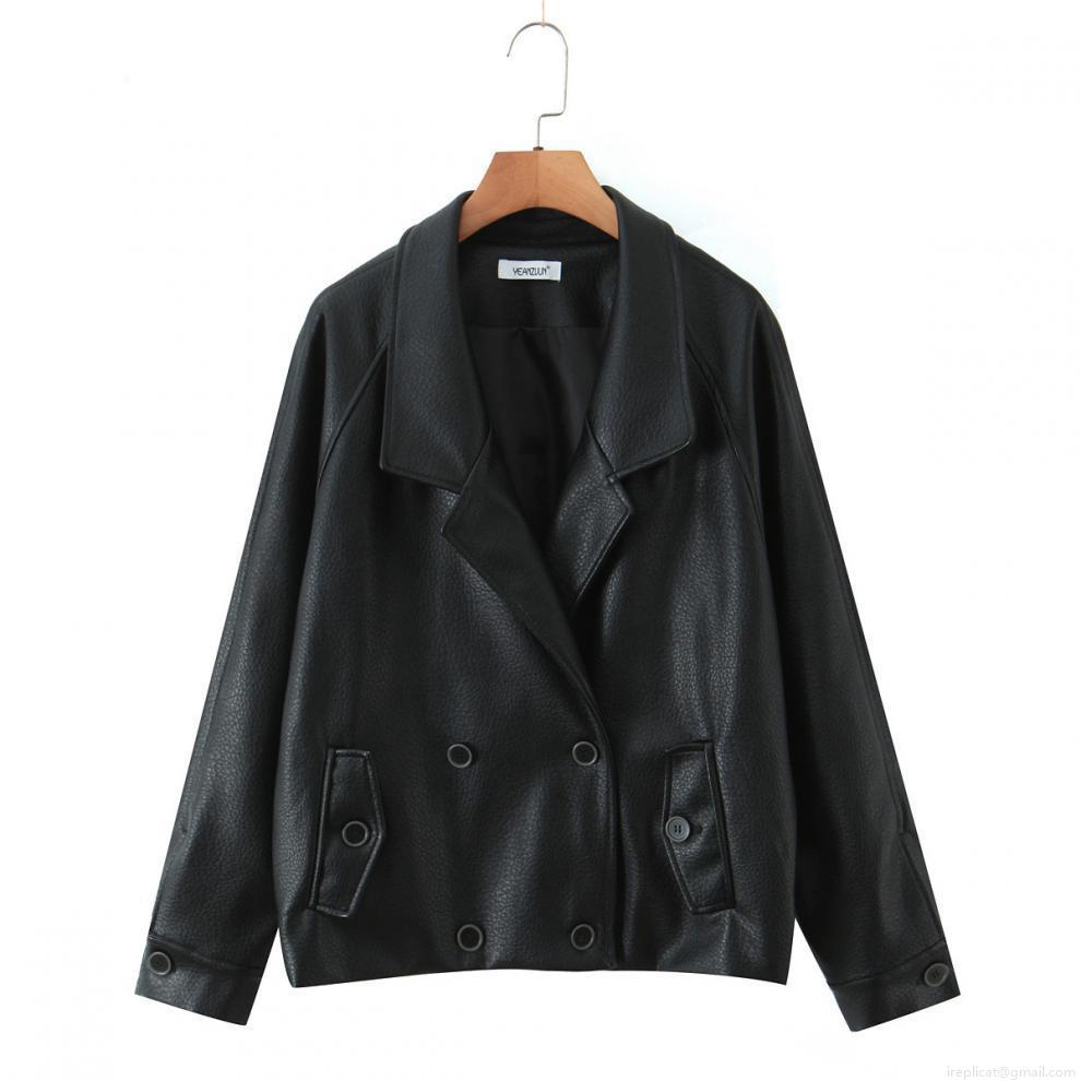 • Women's Vintage Faux PU Leather Jacket Double Breasted Lapel Collar Loose Fit Streetwear Fashion Casual Outwear Coat For Women Autumn Winter