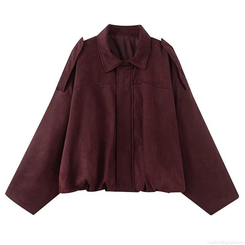 • Women's Vintage Faux Suede Bomber Jacket Loose Fit Square Collar Long Sleeve Outerwear For Daily Casual Streetwear Fall Winter Warm Coat Retro Style