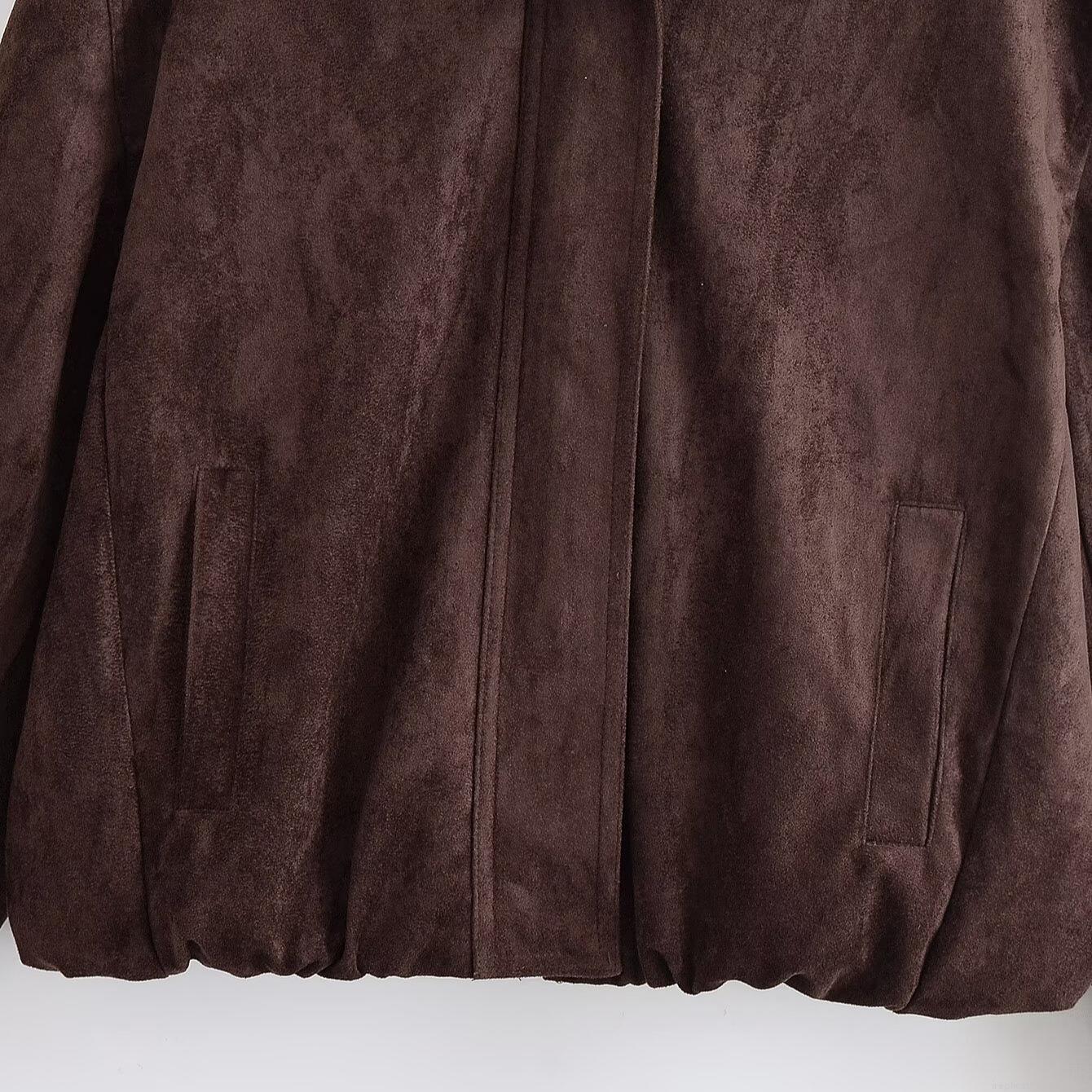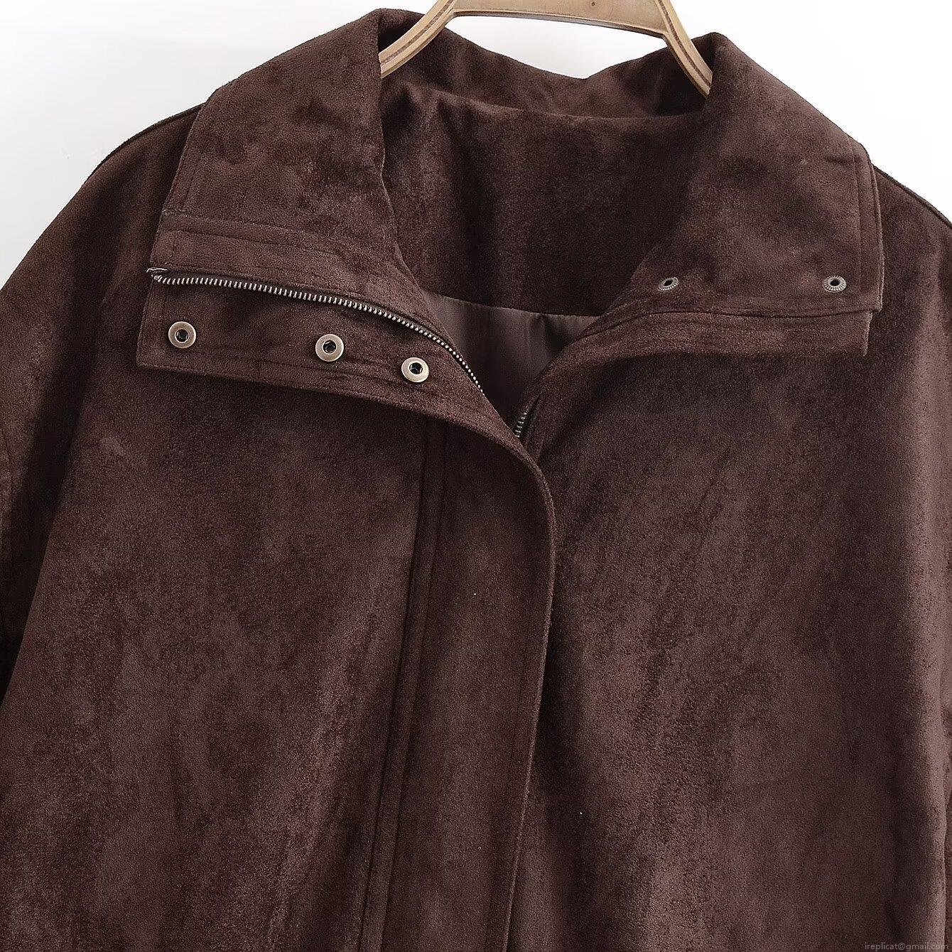 • Women's Vintage Faux Suede Jacket Casual Loose Fit Long Sleeve Outerwear With Zipper And Snap Pockets Fall Winter Coat