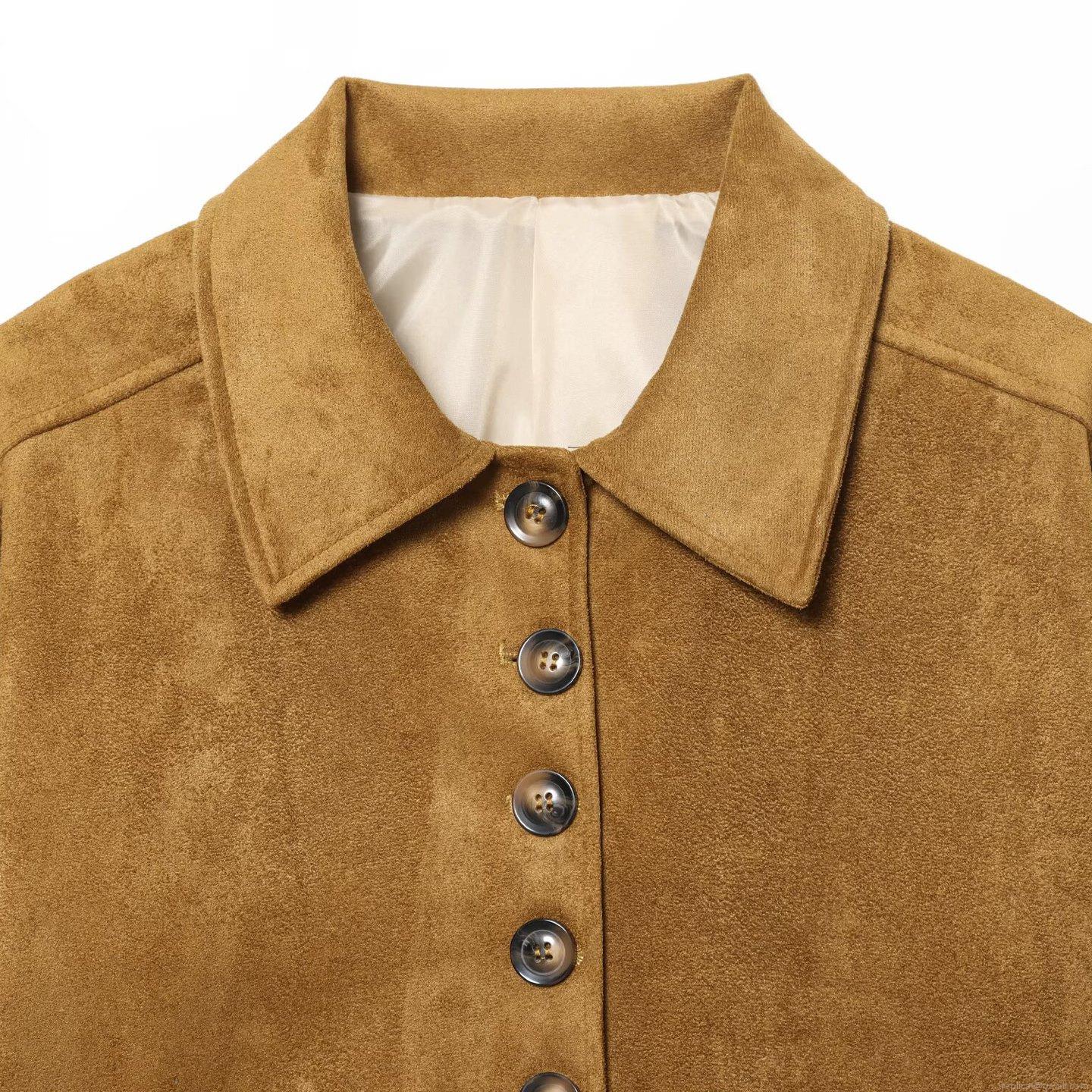 • Women's Vintage Faux Suede Jacket Minimalist Single Breasted Short Coat With Pockets Casual Streetwear Autumn Winter Polyester Outwear