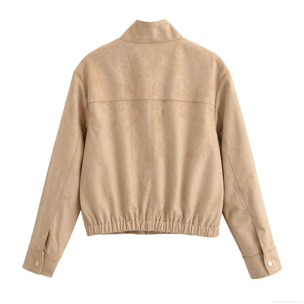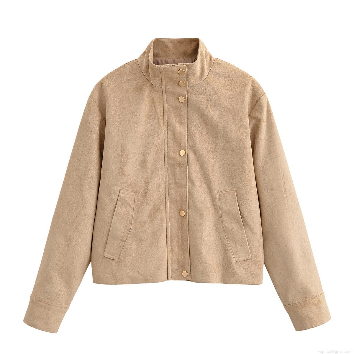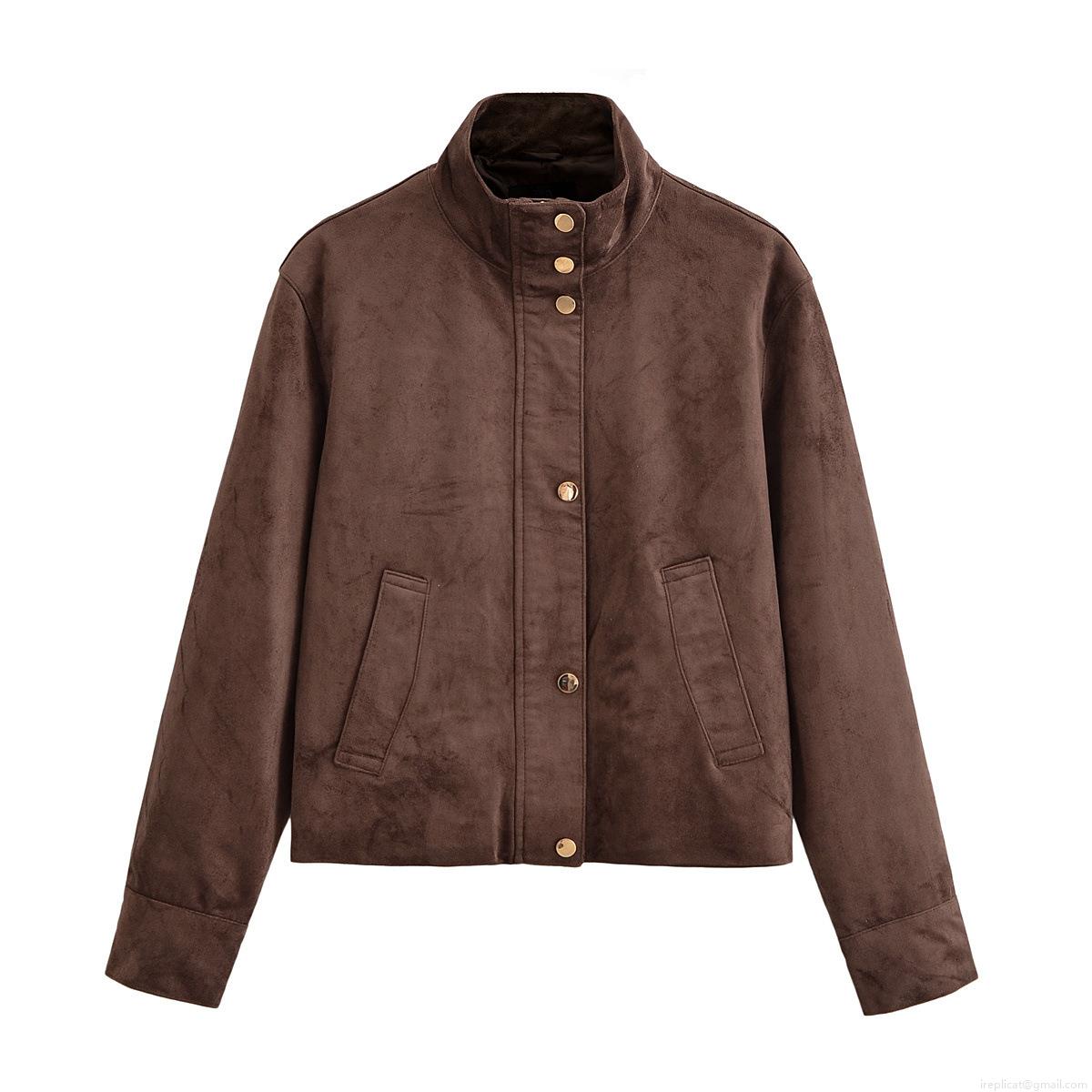 Women's Vintage Faux Suede Jacket Stand Collar Single Breasted Short Outerwear Coat Streetwear Autumn Winter Casual Fashion For Women