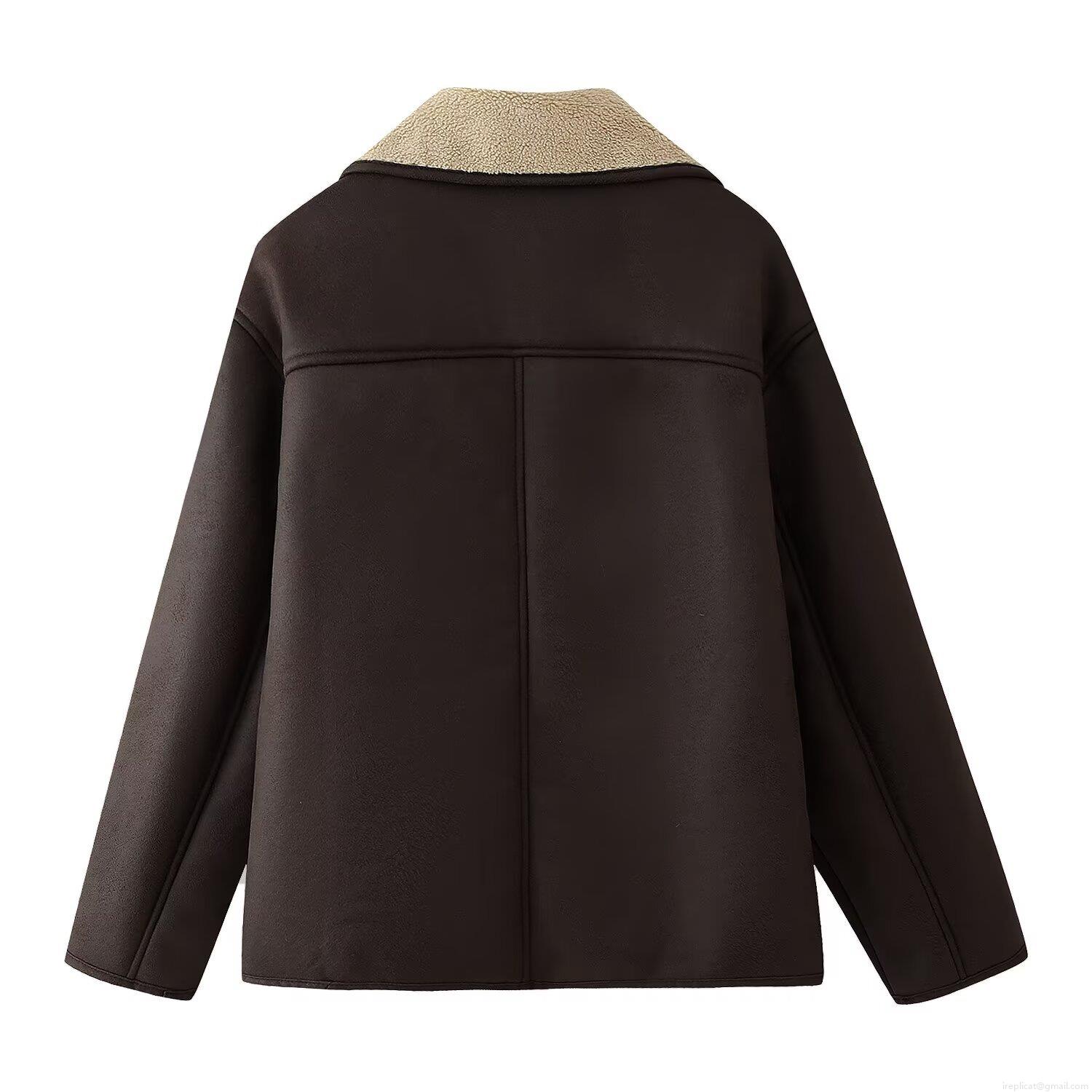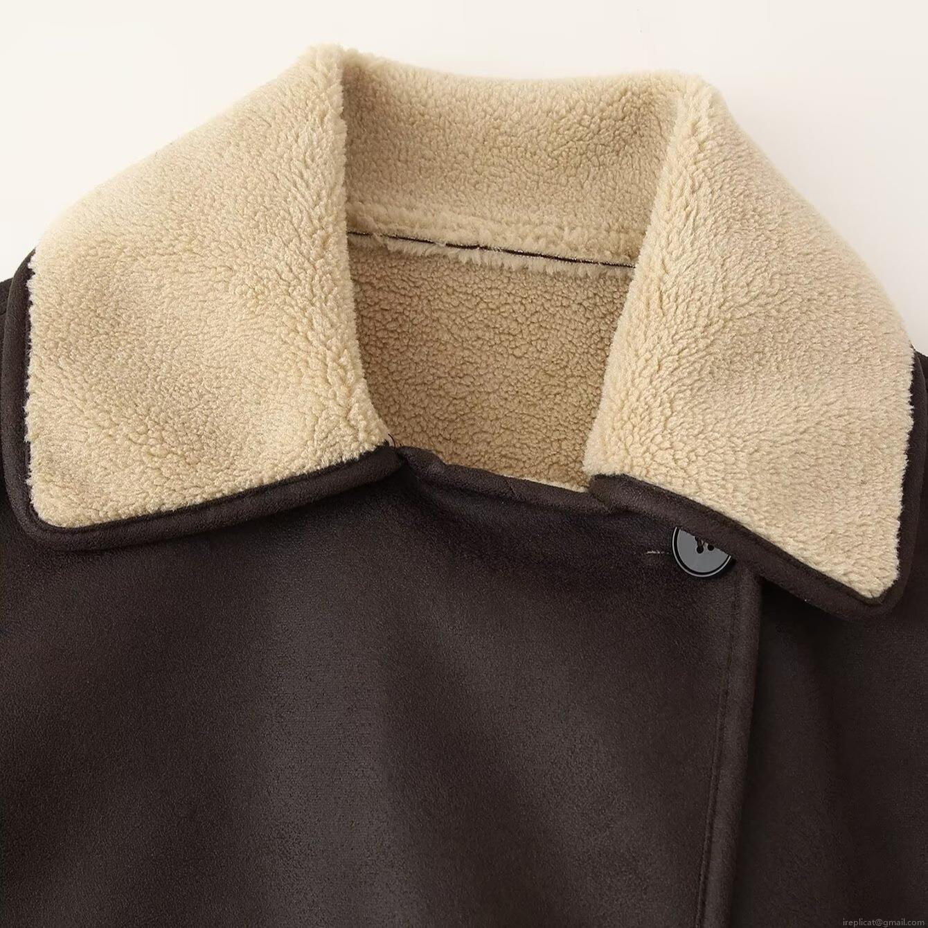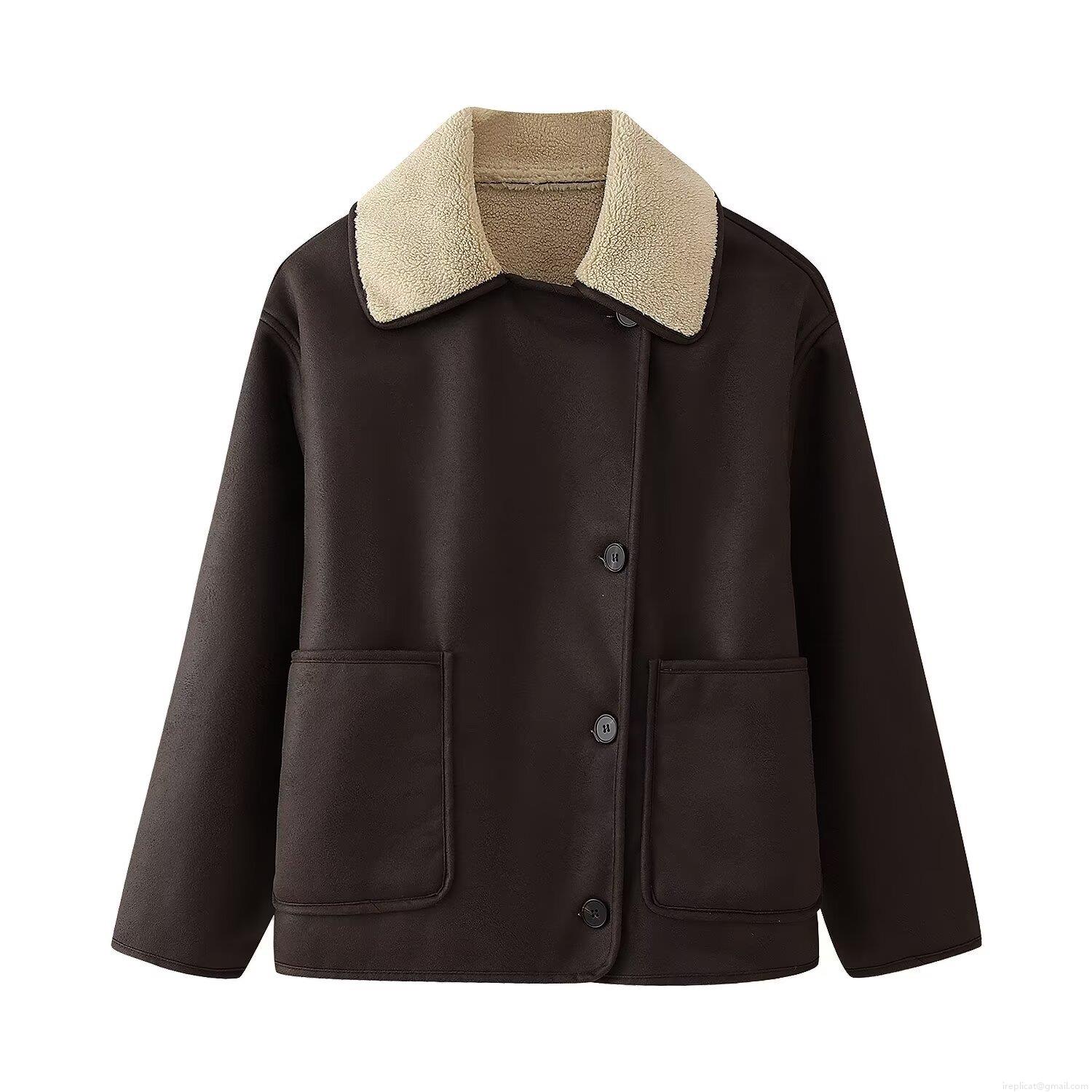 • Women's Vintage Faux Suede Lamb Wool Padded Jacket Loose Fit Turn-down Collar Thick Warm Short Coat For Autumn Winter Casual Outwear