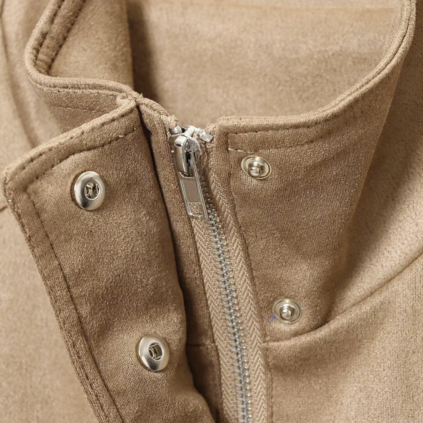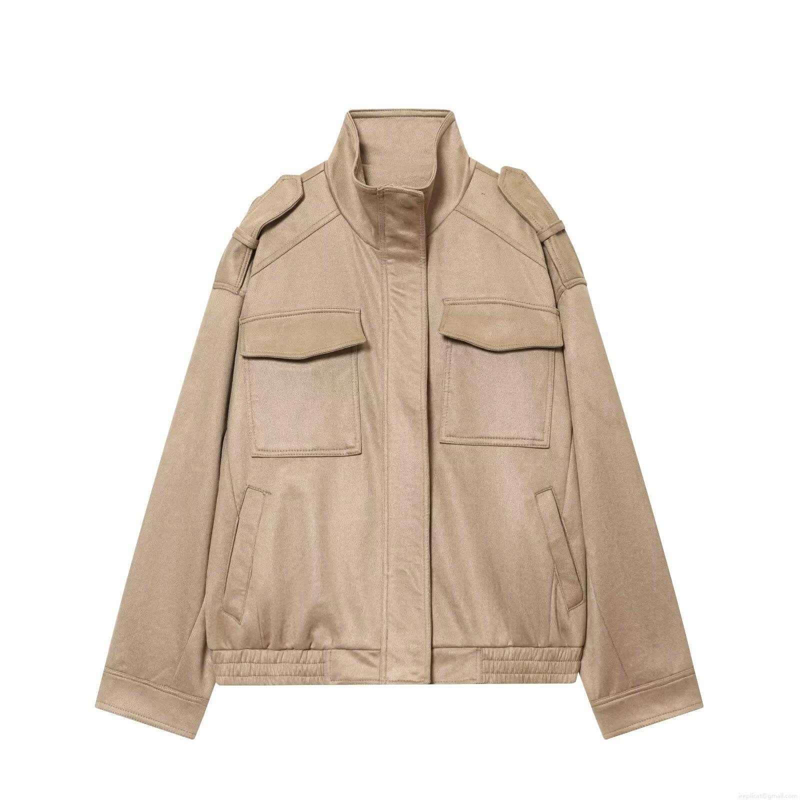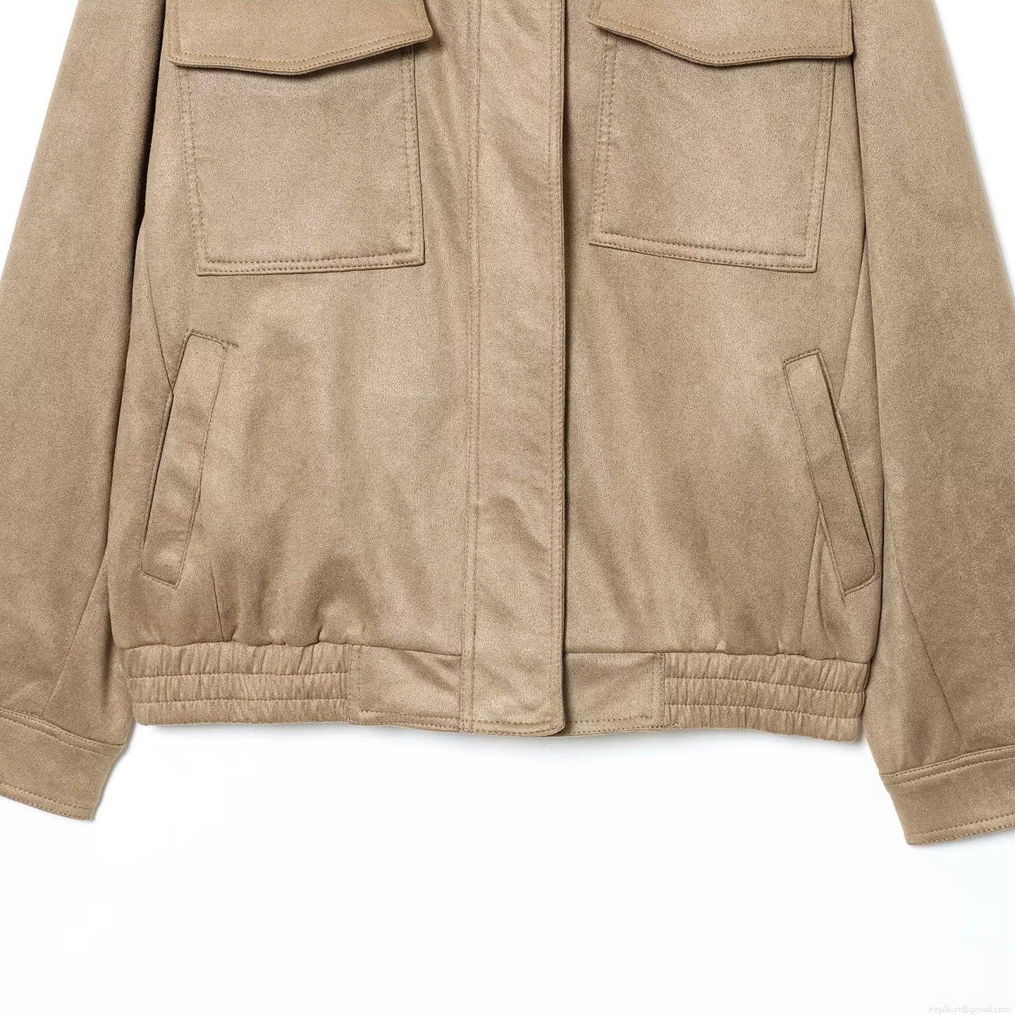 • Women's Vintage Faux Suede Polyester Jacket Loose Utility Outerwear With Epaulets Multi Pockets And Elastic Hem Casual Autumn Winter Coat