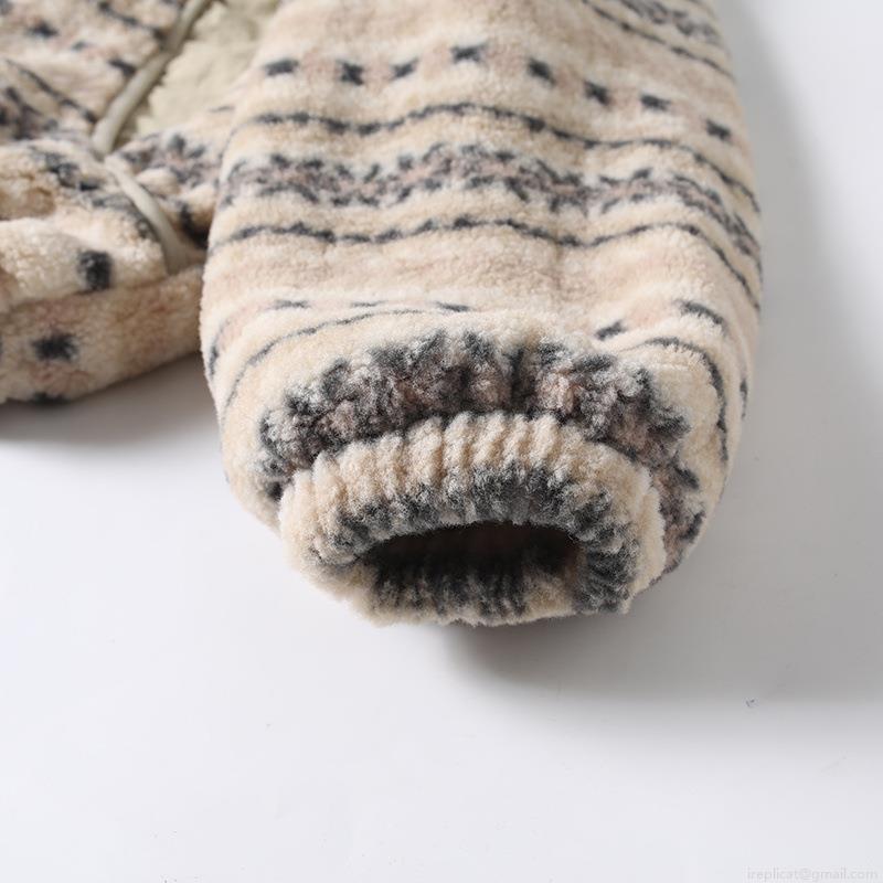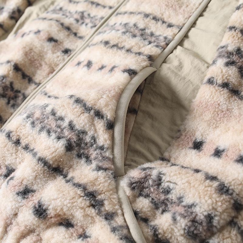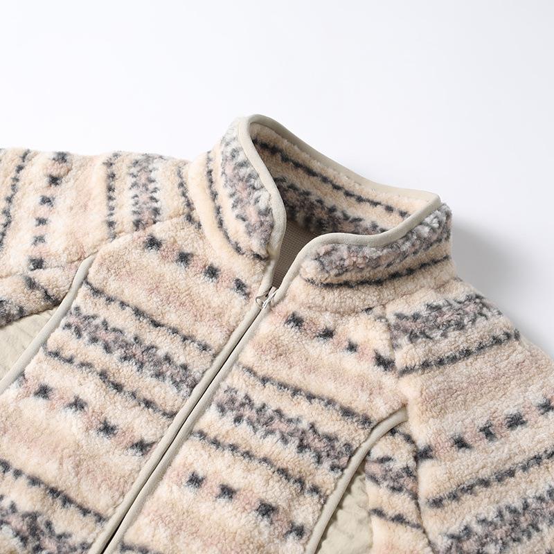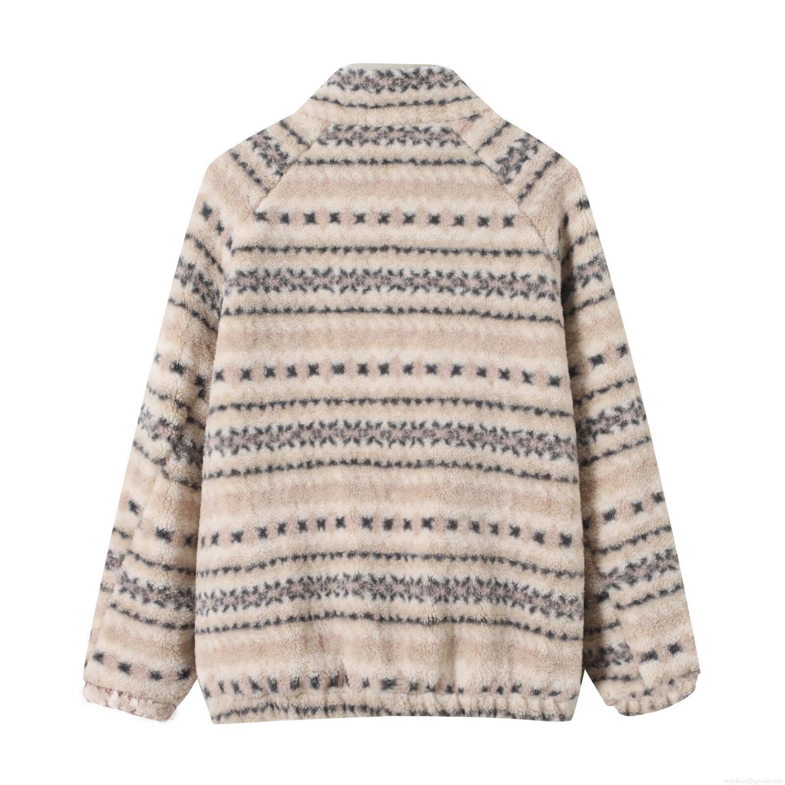 • Women's Vintage Geometric Ethnic Print Faux Sherpa Fleece Jacket Thick Warm Stand Collar Zipper Long Sleeve Loose Casual Short Outerwear Coat