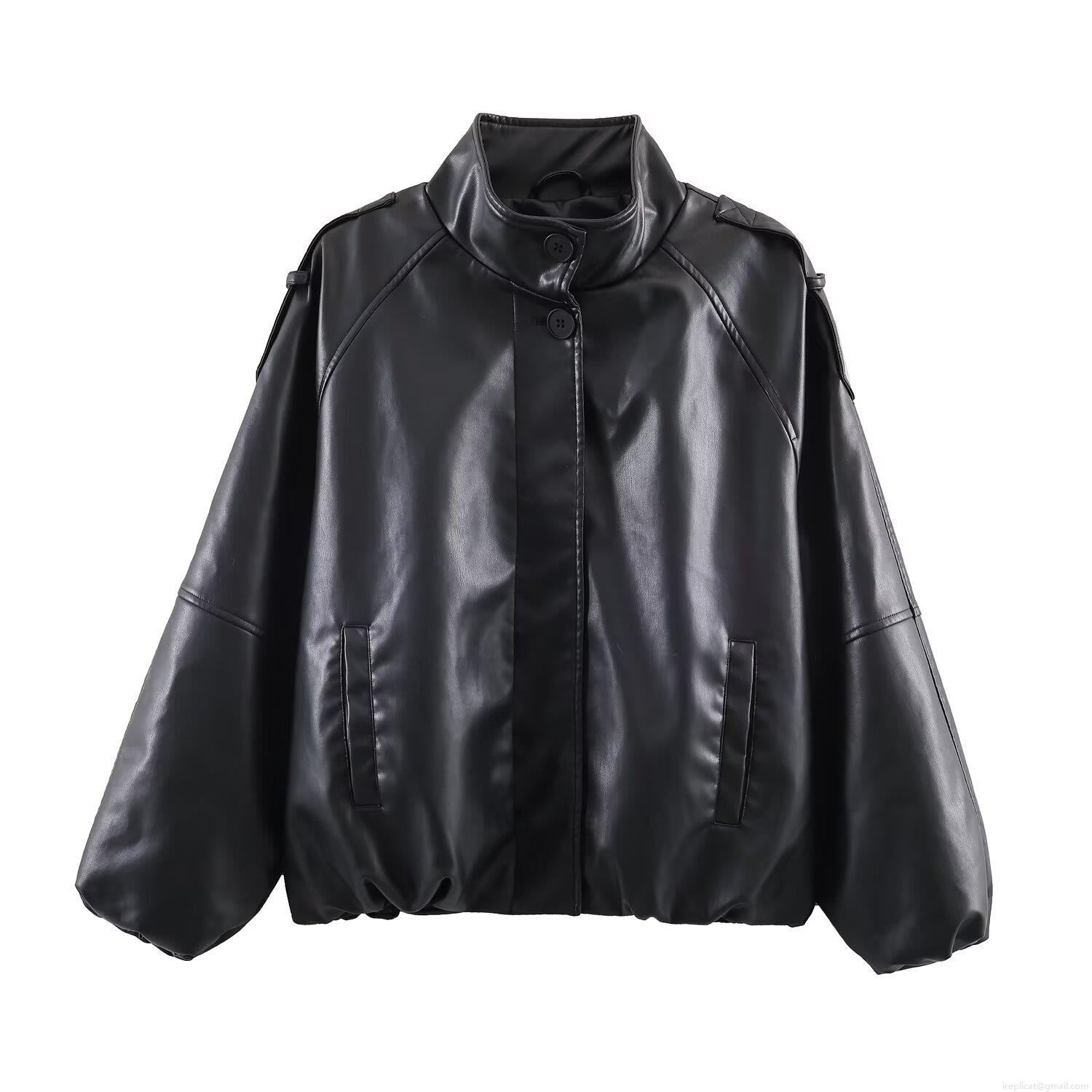 • Women's Vintage Oversized PU Leather Jacket Faux Leather Button Up Moto Coat With Pockets Long Sleeve Streetwear Casual Outerwear For Autumn Winter Lady