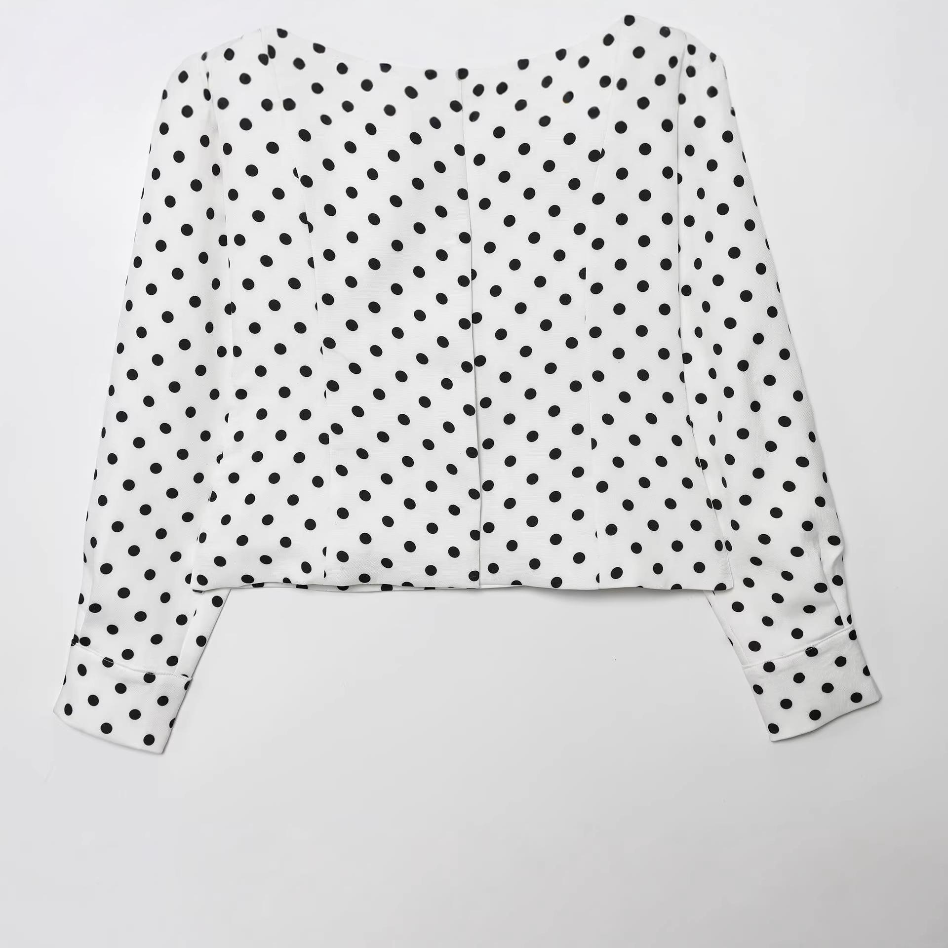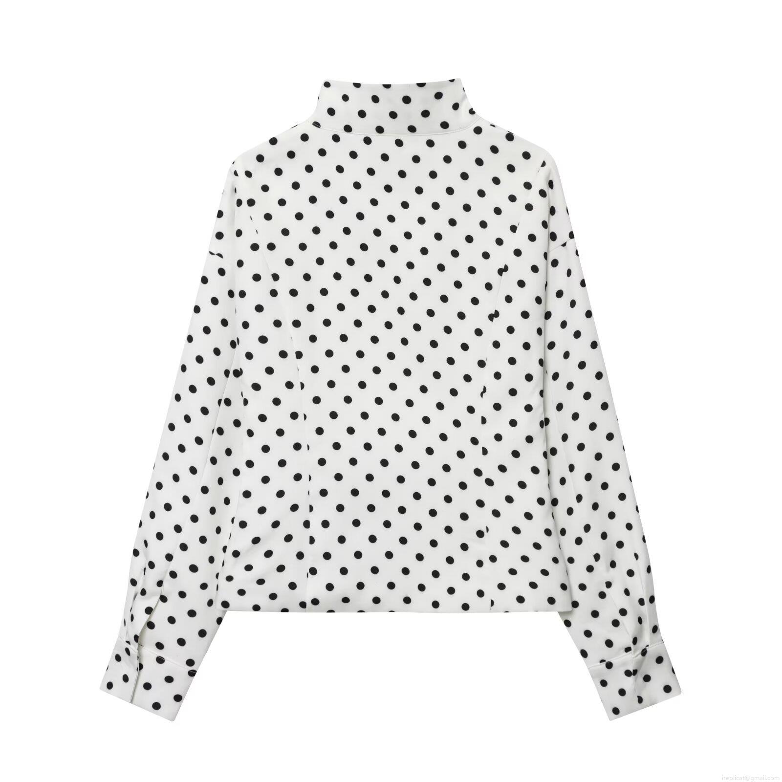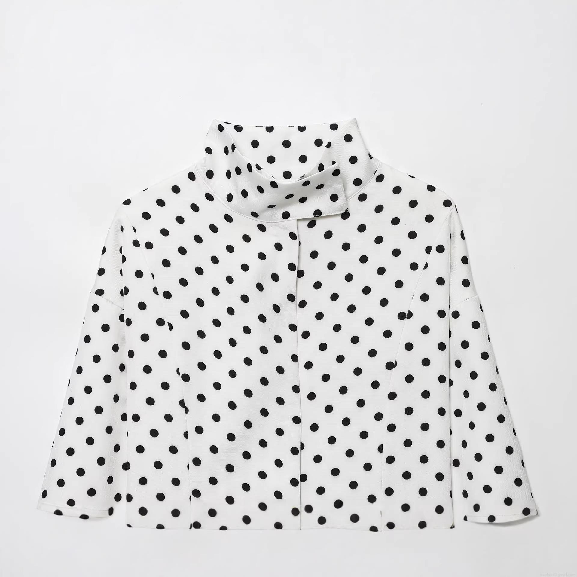 • Women's Vintage Polka Dot Print Jacket Long Sleeve Mock Neck Zipper Pocket Casual Streetwear Loose Autumn Outerwear Coat For Women