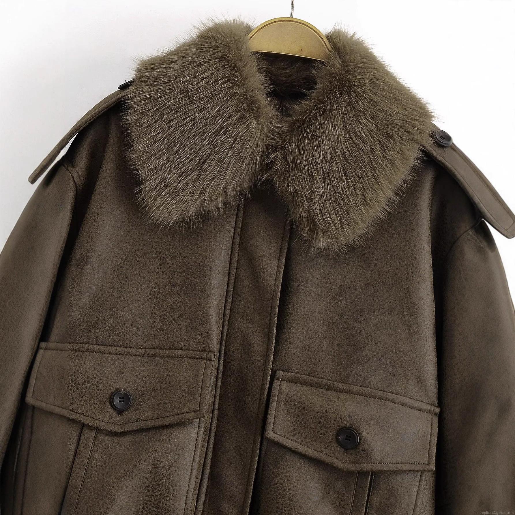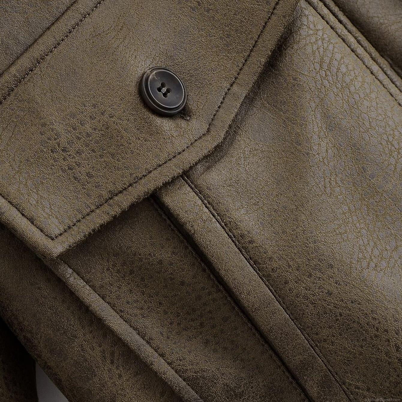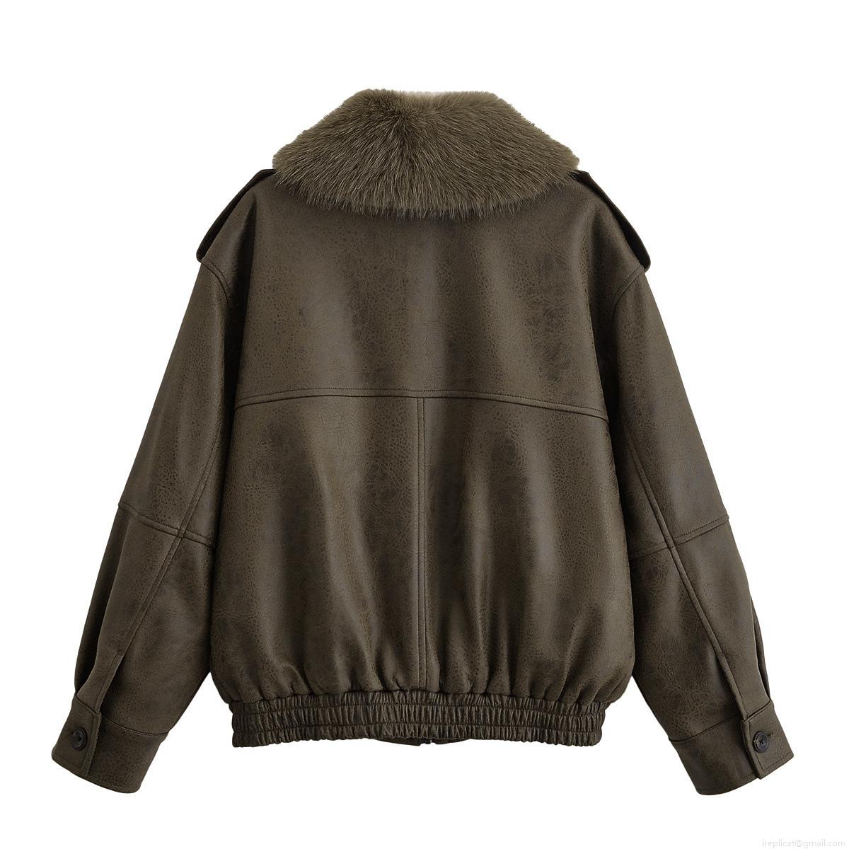 • Women's Vintage PU Leather Bomber Jacket With Detachable Faux Fur Collar Loose Fit Zip Up Long Sleeve Outerwear With Big Pockets Streetwear Fashion Coat