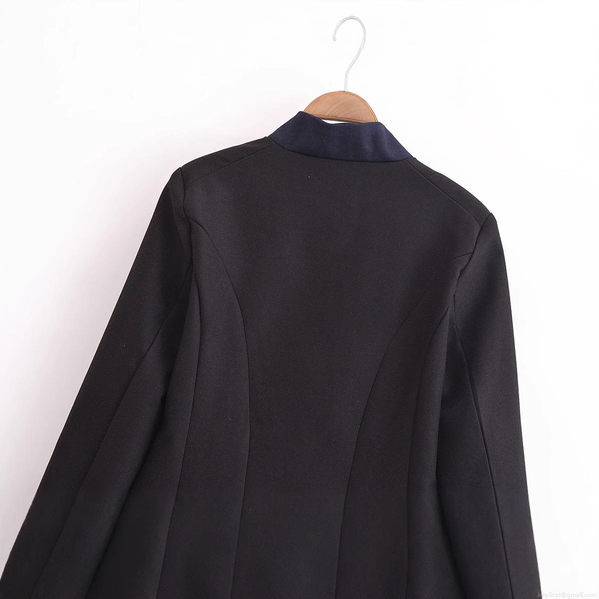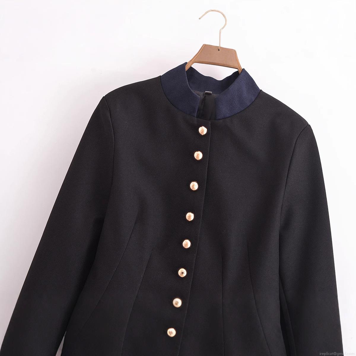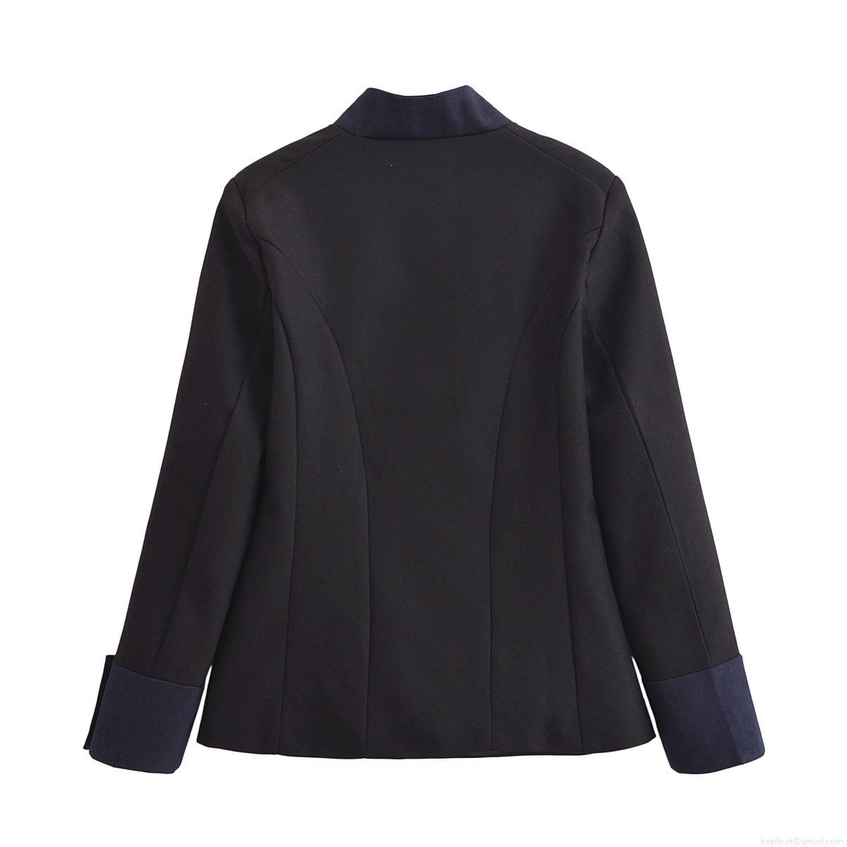 • Women's Vintage Stand Collar Jacket With Gold Jewelry Buttons Black Contrast Patchwork Long Sleeve Outerwear For Streetwear Party Office Polyester Blazer Coat