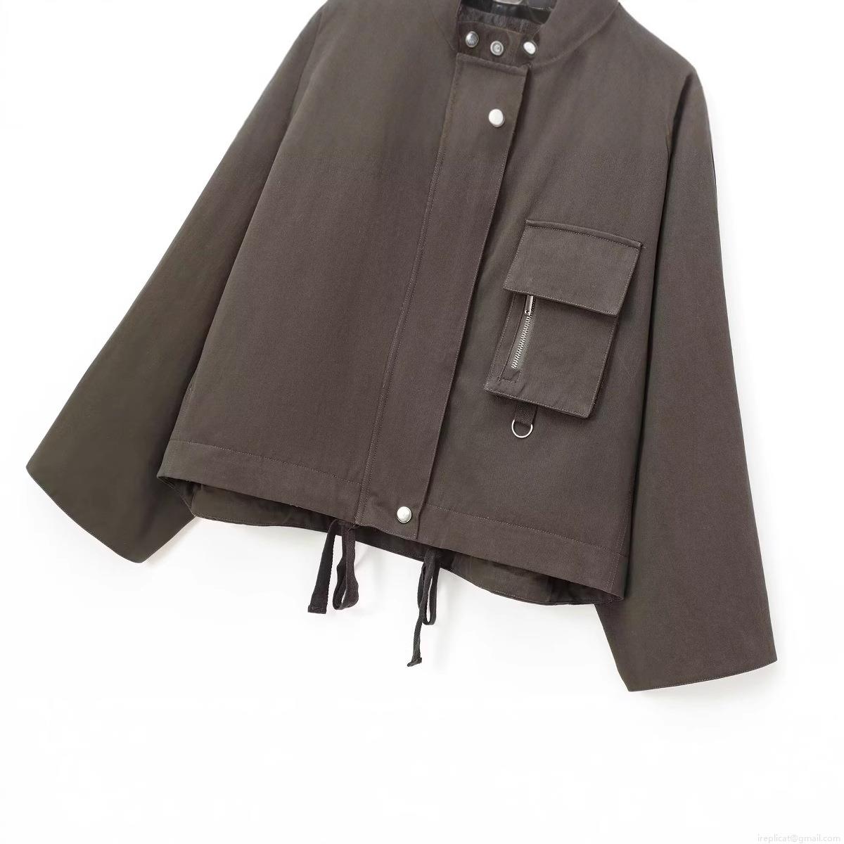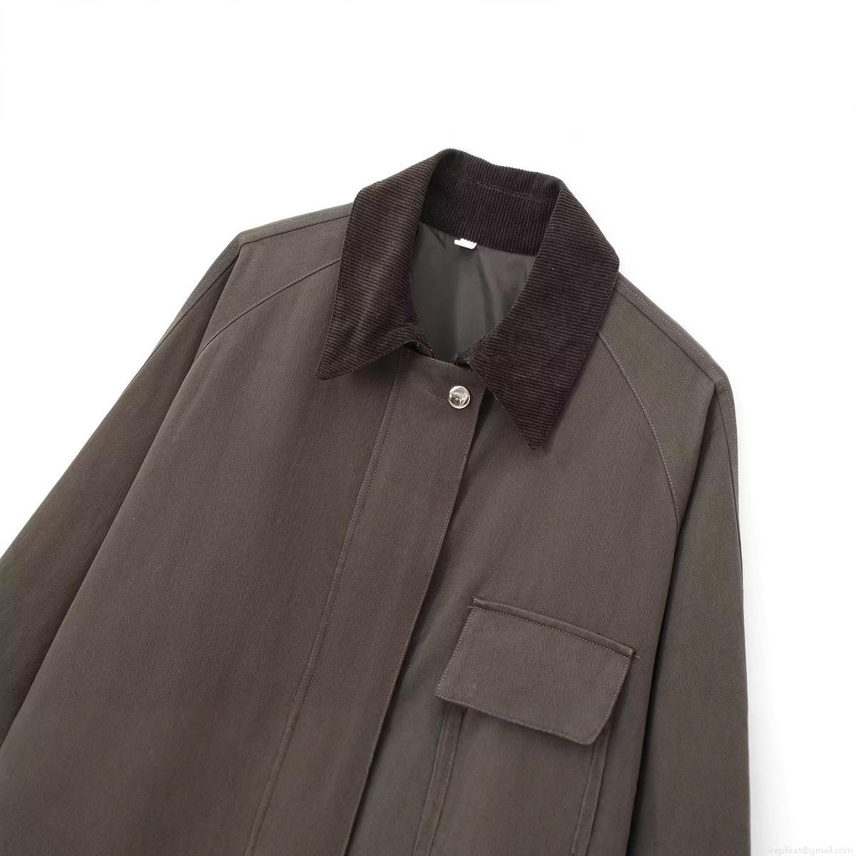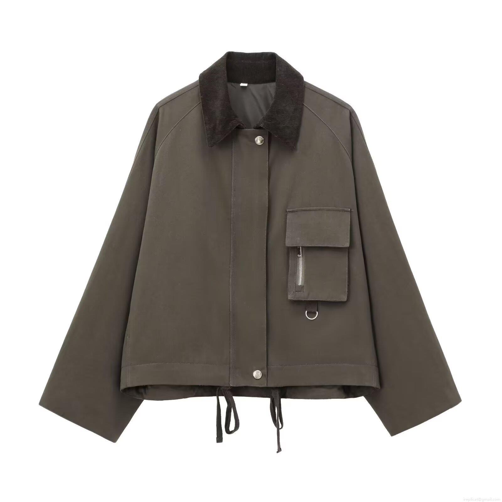 • Women's Waxed Coated Jacket With Corduroy Collar Casual Loose Military Workwear Style Coat Long Sleeve Zipper Pocket Outerwear For Women