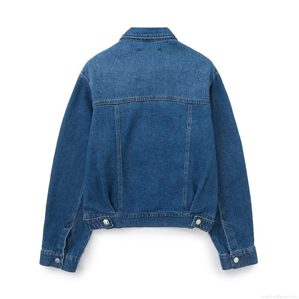 • Women's Western Fashion Long Sleeve Denim Jacket Washed Polyester Cotton Blend Outerwear Navy Blue Solid Color Streetwear Jean Coat With Metal Buttons