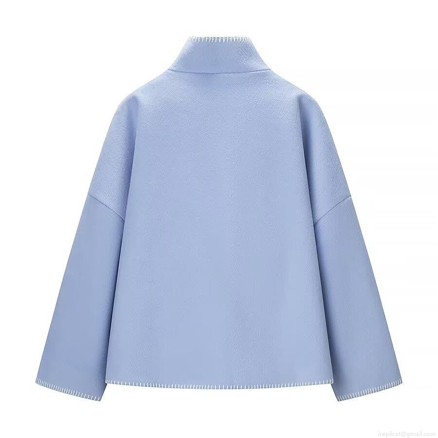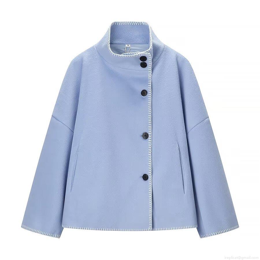 • Women's Western Style Woolen Jacket Stand Collar Contrast White Stitching Single Breasted Long Sleeve Loose Coat For Fall Winter Streetwear