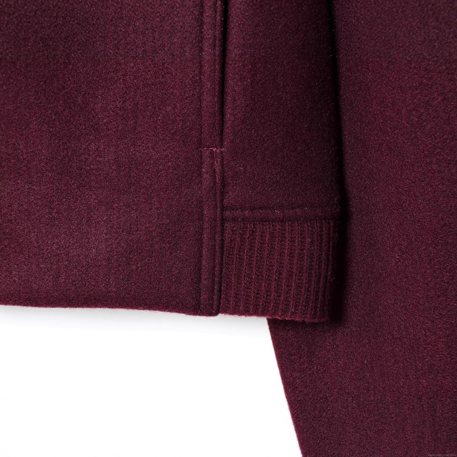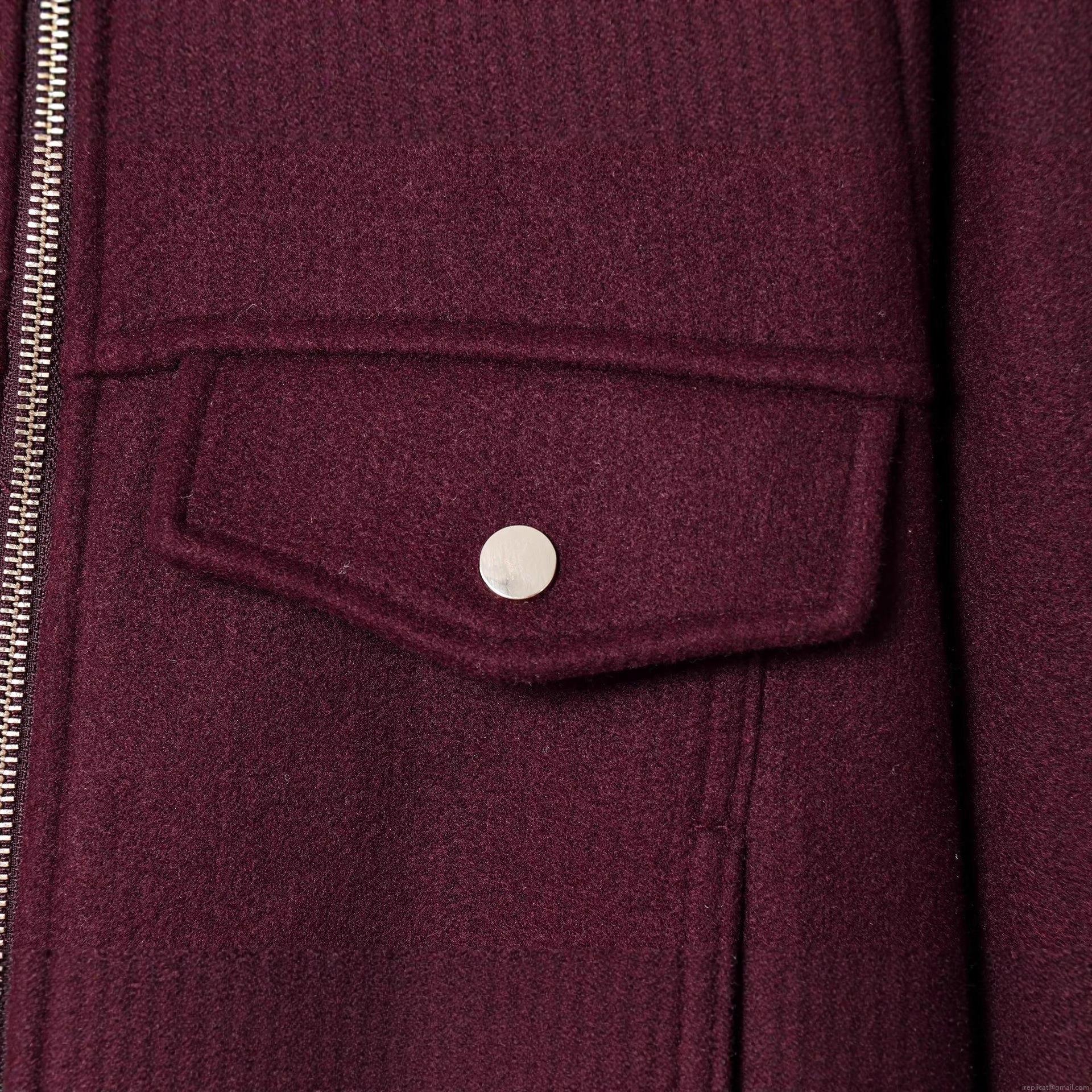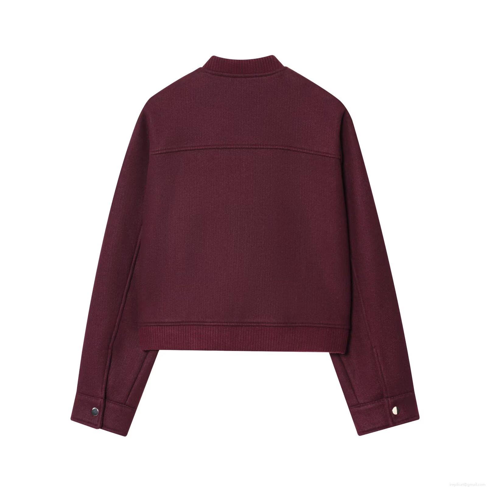 • Women's Wine Red Bomber Jacket Polyester Woolen Feel Zip Up Coat With Pockets Ribbed Trim Casual Long Sleeve Stand Collar Streetwear Autumn Outerwear