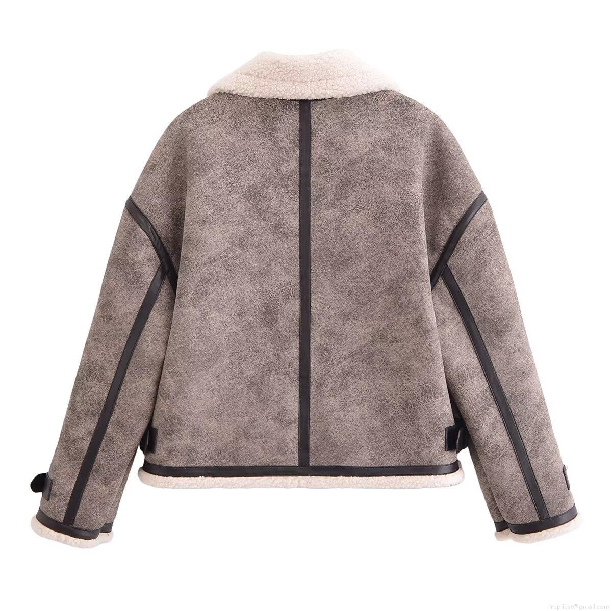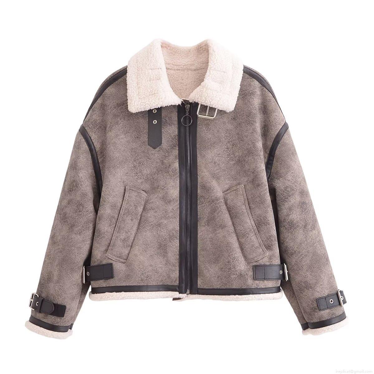 • Women's Winter Biker Jacket Faux Suede Aviator Coat With Faux Lambswool Lining Thick Warm Long Sleeve Outerwear For Ladies Fashion Street Style Biker Outerwear