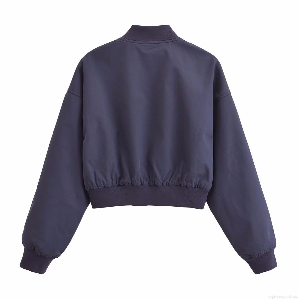 • Women's Winter Fashion Solid Color Bomber Jacket Casual Short Baseball Coat With Metal Zipper Ribbed Trim Long Sleeve Polyester Outerwear