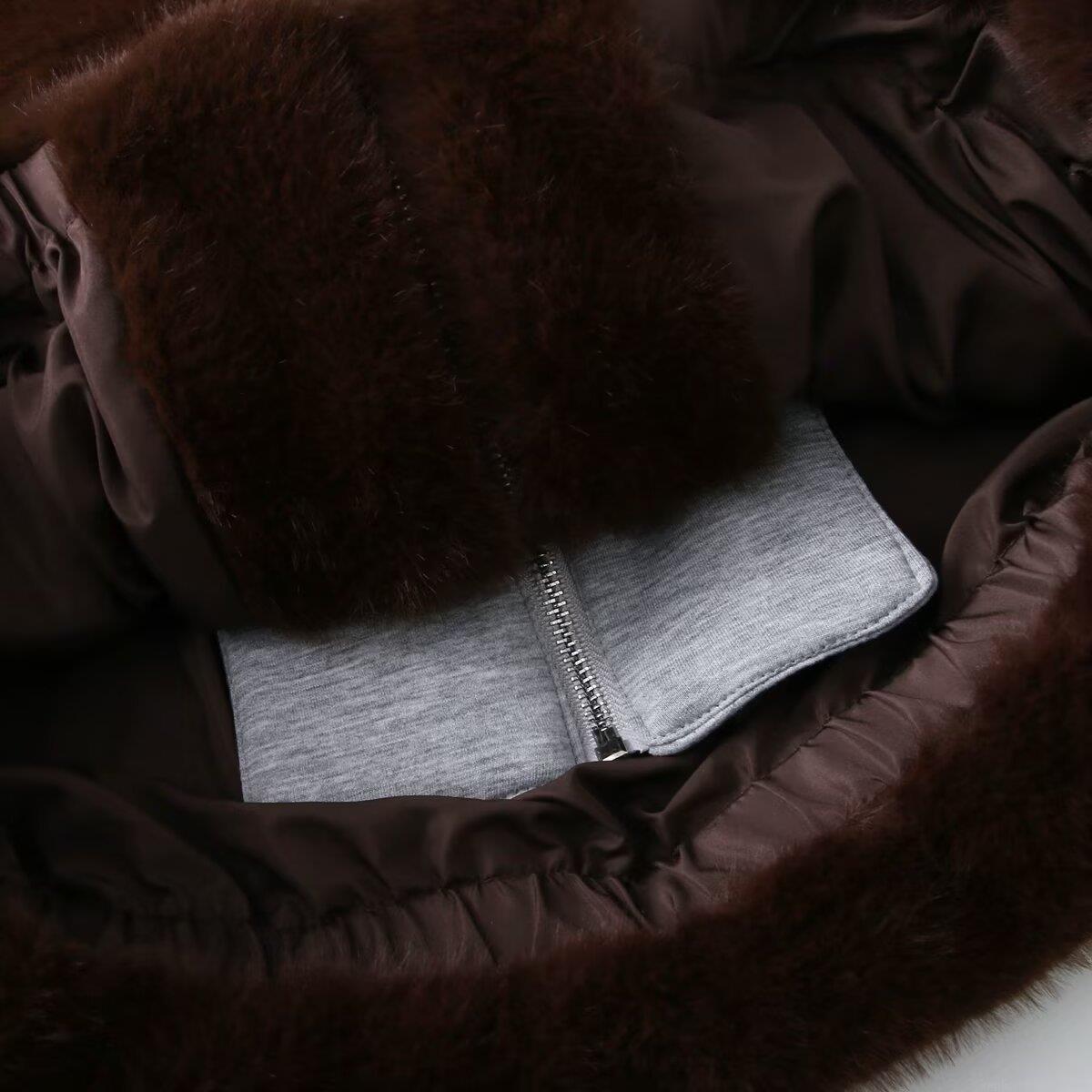 • Women's Winter Faux Fur Hooded Jacket Casual Contrast Stitching Zipper Coat Loose Long Sleeve Outerwear For Women