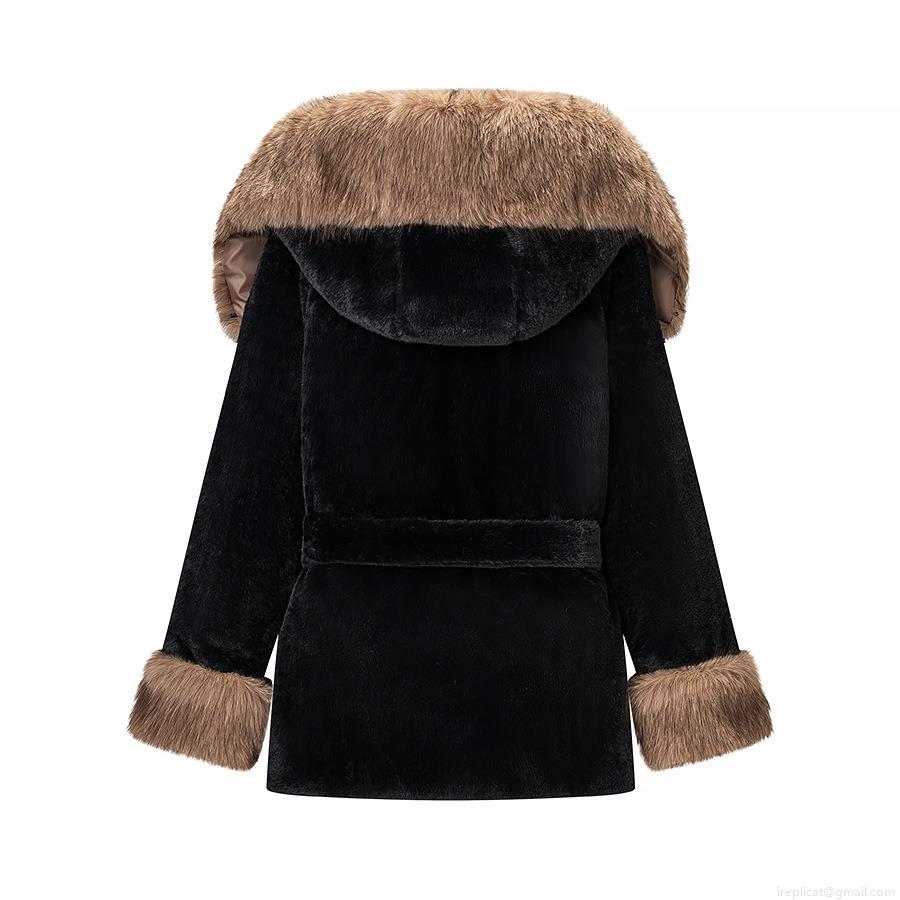 • Women's Winter Faux Fur Hooded Jacket Thick Warm Quilted Coat With Belt Elegant Long Sleeve Outerwear For Lady Fashion Casual Solid Color Overcoat