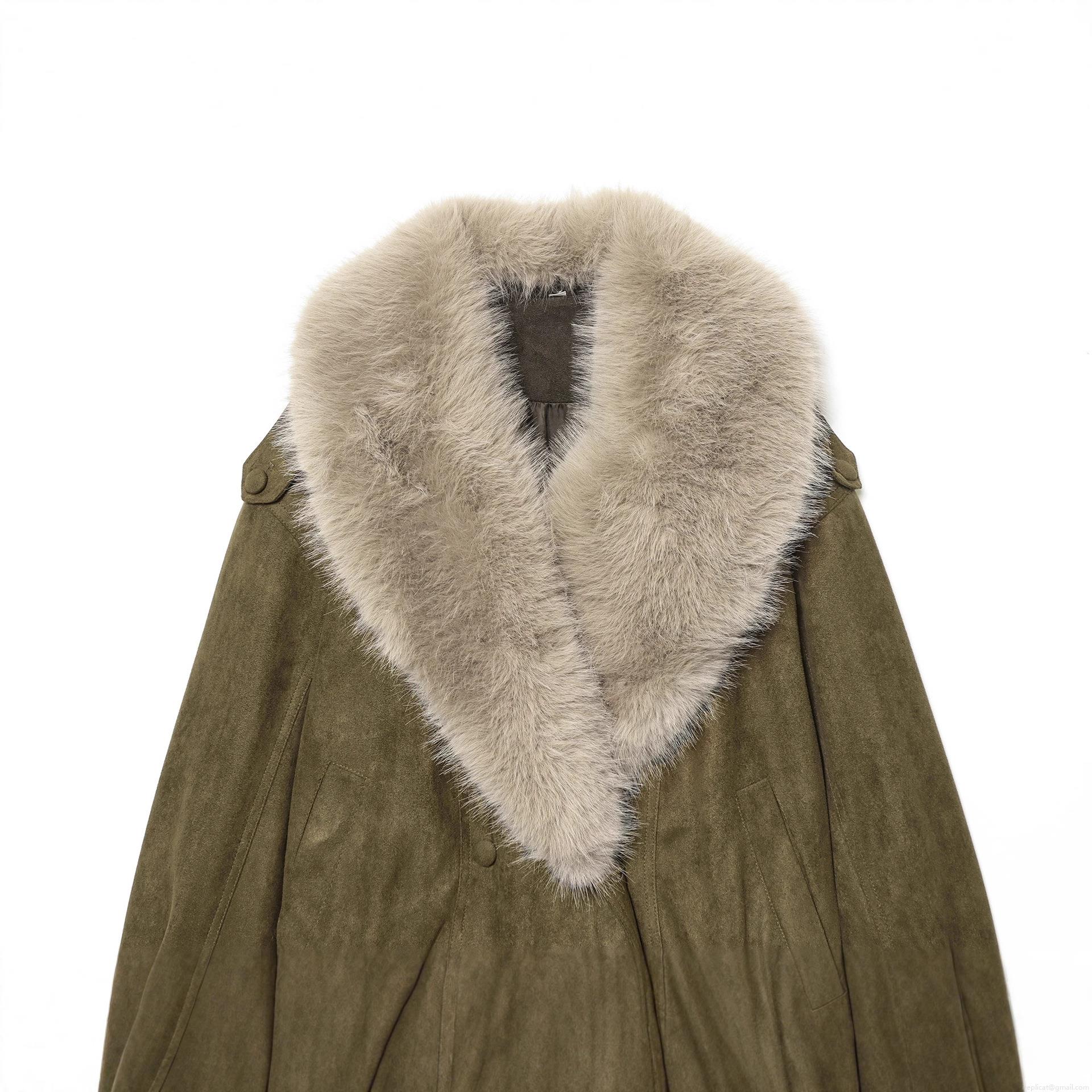 • Women's Winter Faux Suede Jacket With Faux Fur Collar Olive Green Streetwear Cropped Zip Up Pocket Warm Outerwear For Ladies
