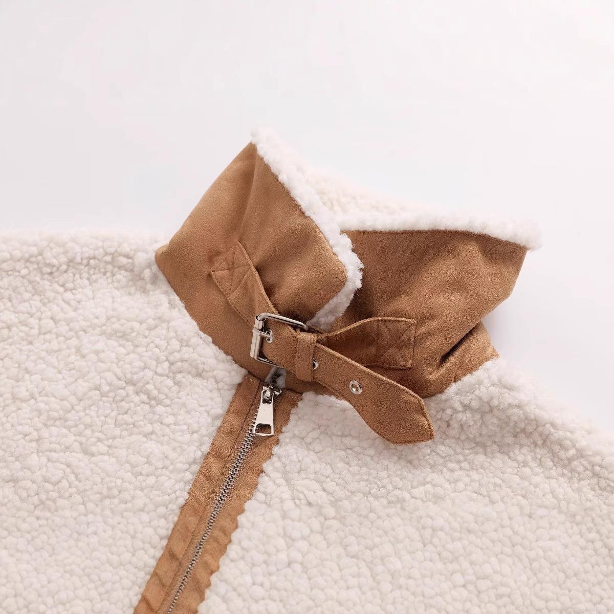 Women's Winter Warm Sherpa Fleece Jacket Faux Suede Patchwork Stand Collar Zipper Outerwear Casual Streetwear Plush Coat For Women