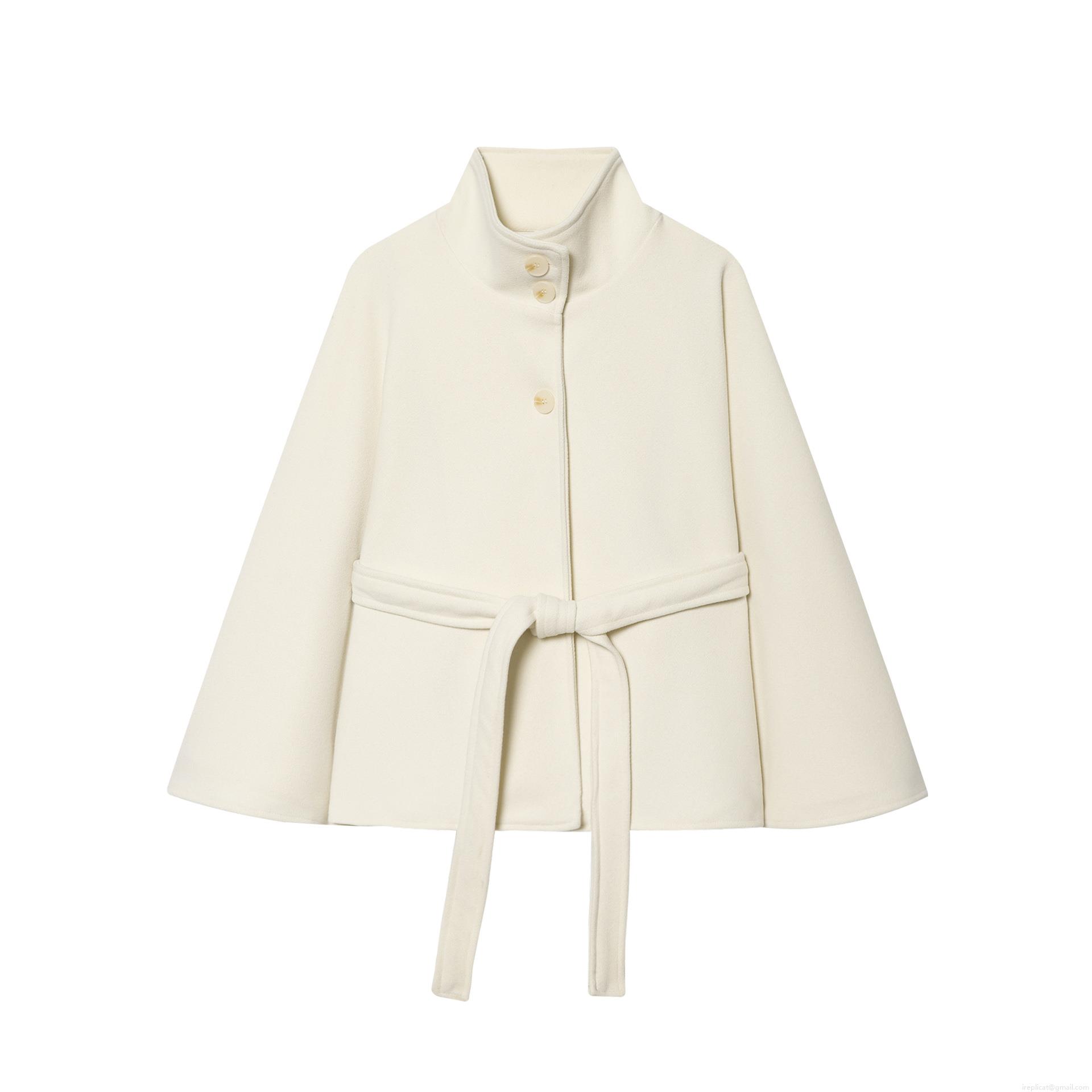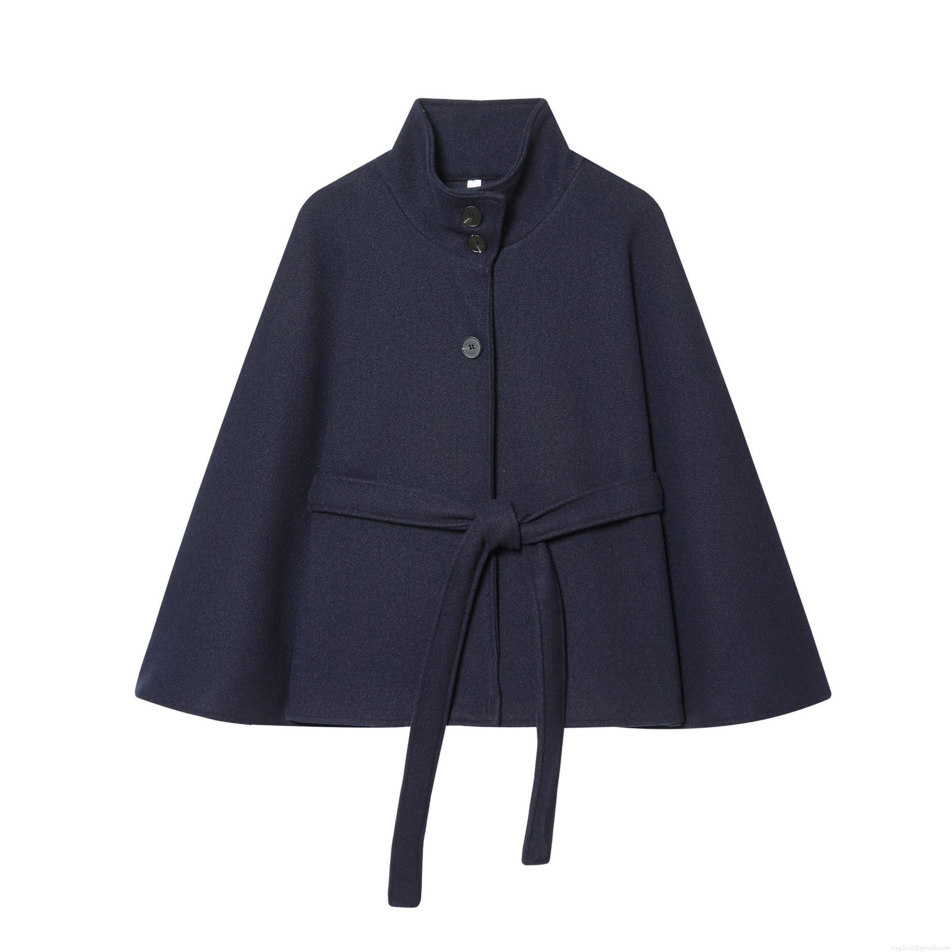 Women's Woolen Cape Coat Stand Collar Tie Waist Short Wool Blend Jacket Wide Sleeve Single Breasted Autumn Winter Outerwear Fashion Streetwear