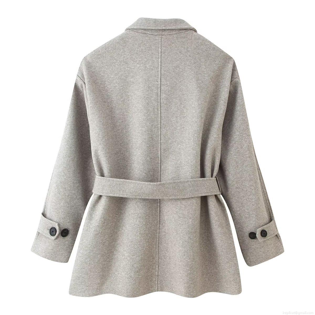 • Women's Woolen Coat Lapel Long Sleeve Belted Waist Single Breasted Solid Color Outerwear Jacket For Autumn Winter Streetwear Ladies Fashion Elegant Trench Coat