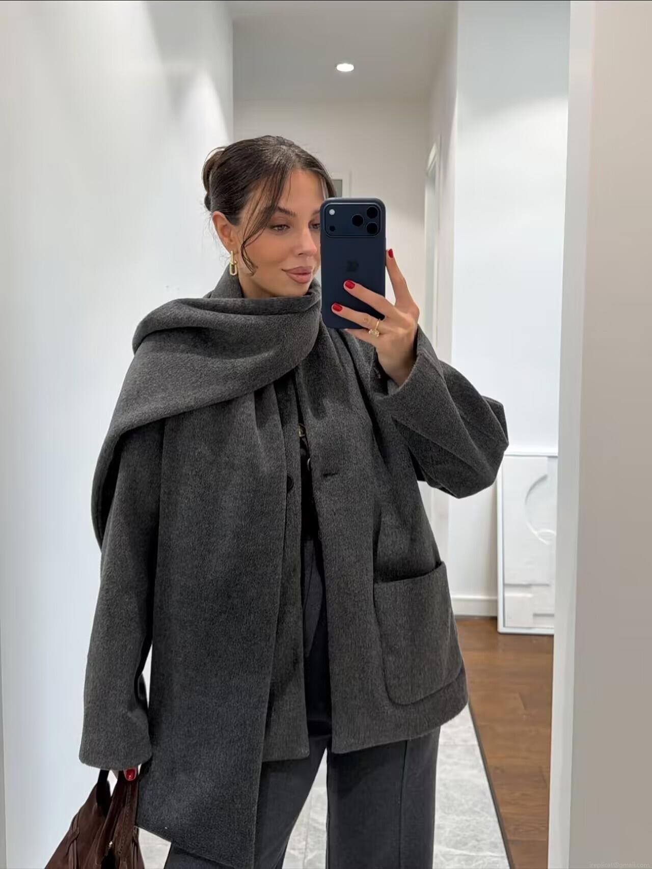• Women's Woolen Coat With Matching Scarf Single Breasted Solid Color Mid-Length Jacket Warm Outerwear For Autumn Winter Casual Streetwear Ladies