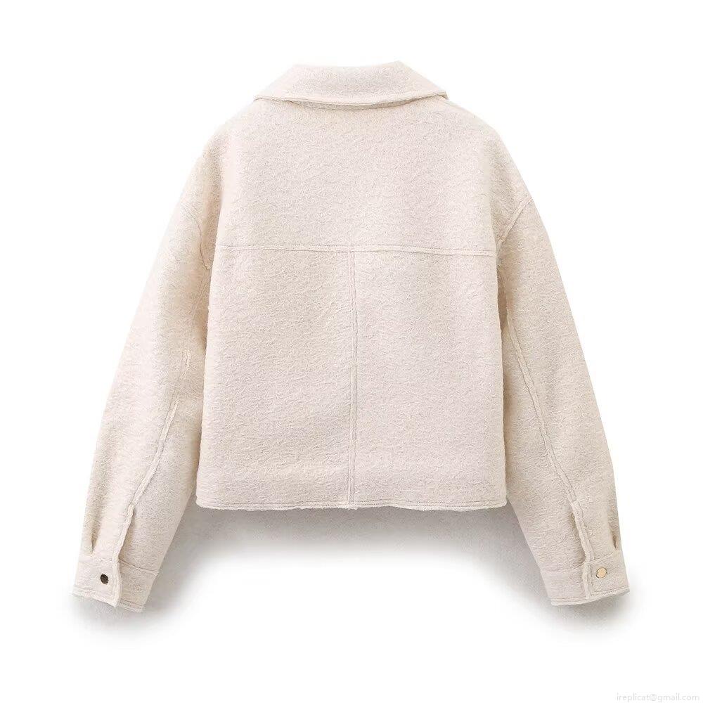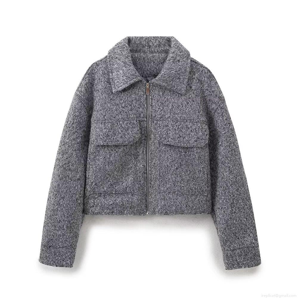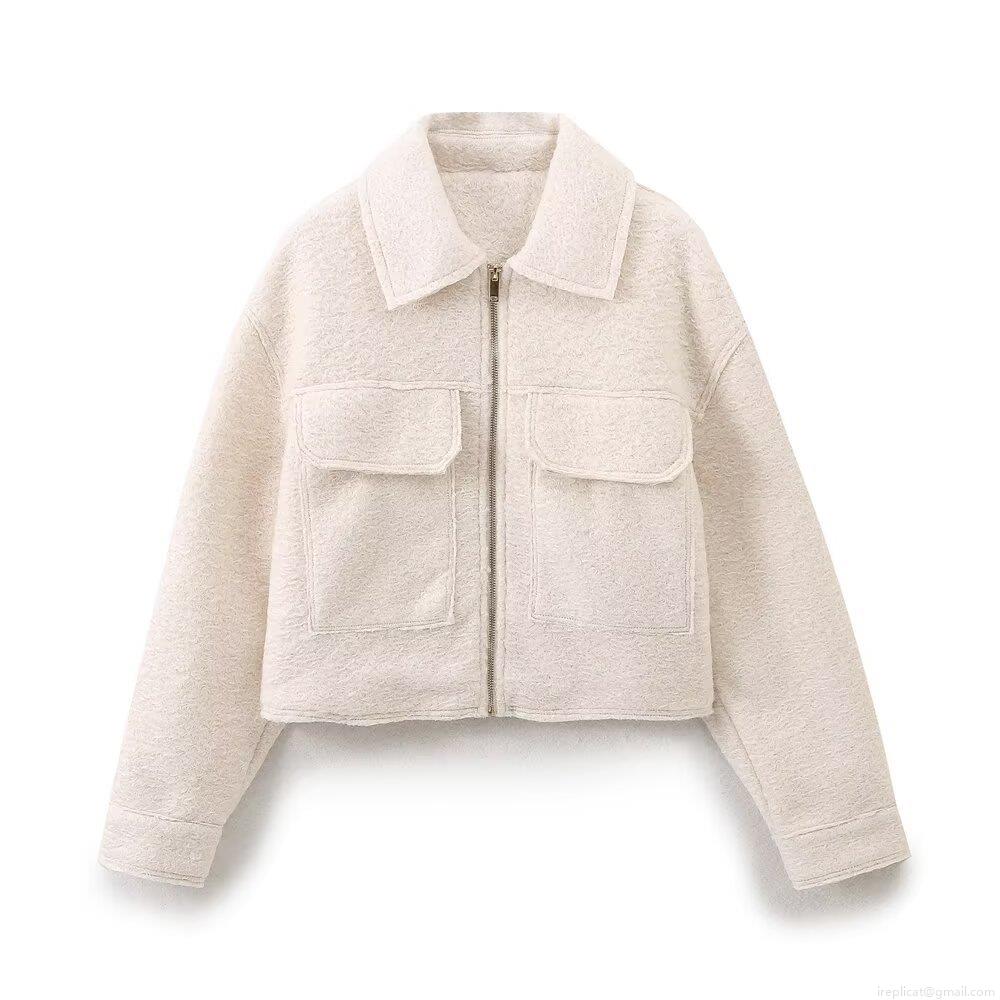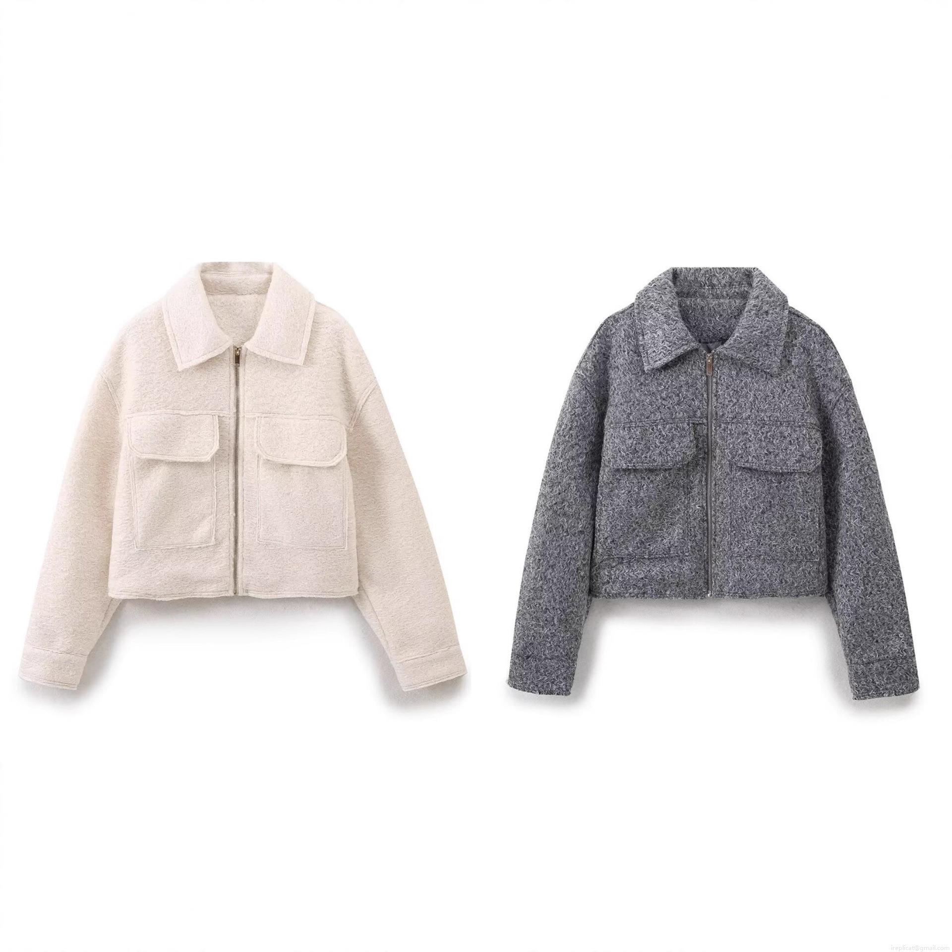 • Women's Woolen Texture Short Jacket Zip-Up Lapel Coat With Pockets Solid Color Thick Outwear Streetwear Style For Autumn Winter Ladies