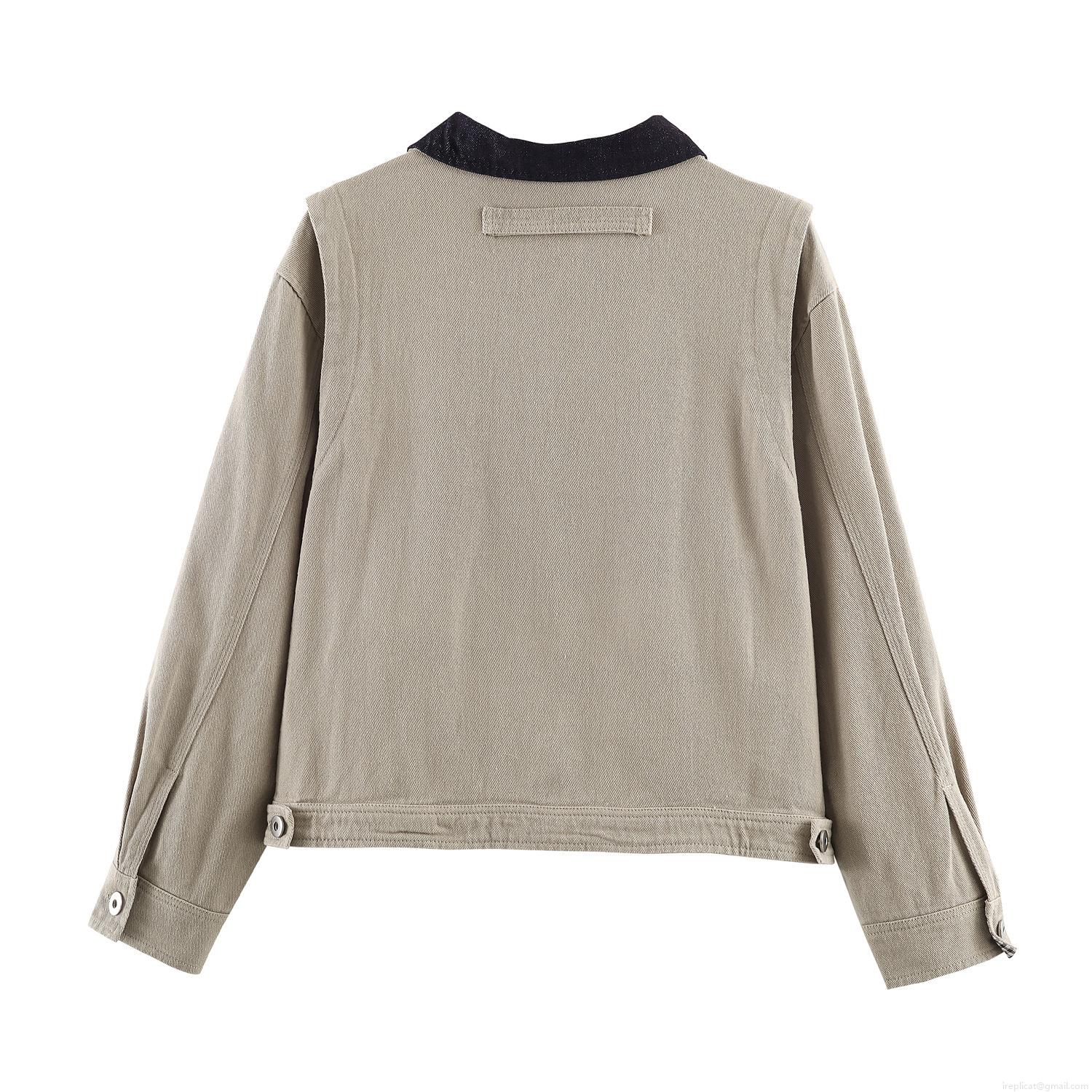 Women's Workwear Jacket Contrast Lapel Long Sleeve Spliced Outdoor Casual Street Style Outerwear With Metal Buttons And Chest Zip Pocket
