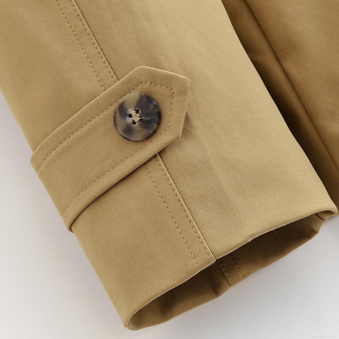 Women's Workwear Style Stand Collar Jacket Casual Mid-Length Polyester Windbreaker With Four Flap Pockets And Epaulettes Streetwear Autumn Outerwear