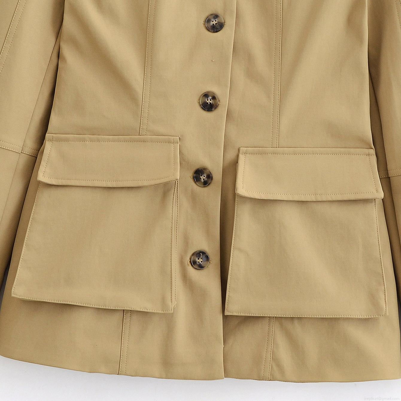 • Women's Workwear Style Stand Collar Jacket Casual Mid-Length Polyester Windbreaker With Four Flap Pockets And Epaulettes Streetwear Autumn Outerwear