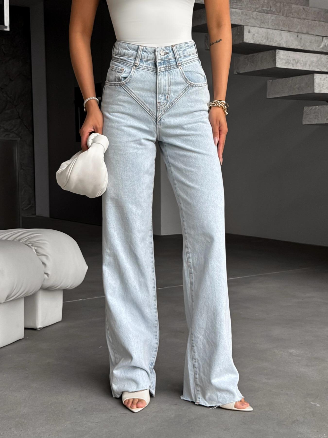 • American Vintage Washed Light Blue High Waisted Wide Leg Jeans Women Streetwear Sexy Denim Flare Pants 100% Cotton Long Trousers Casual Urban Outfits