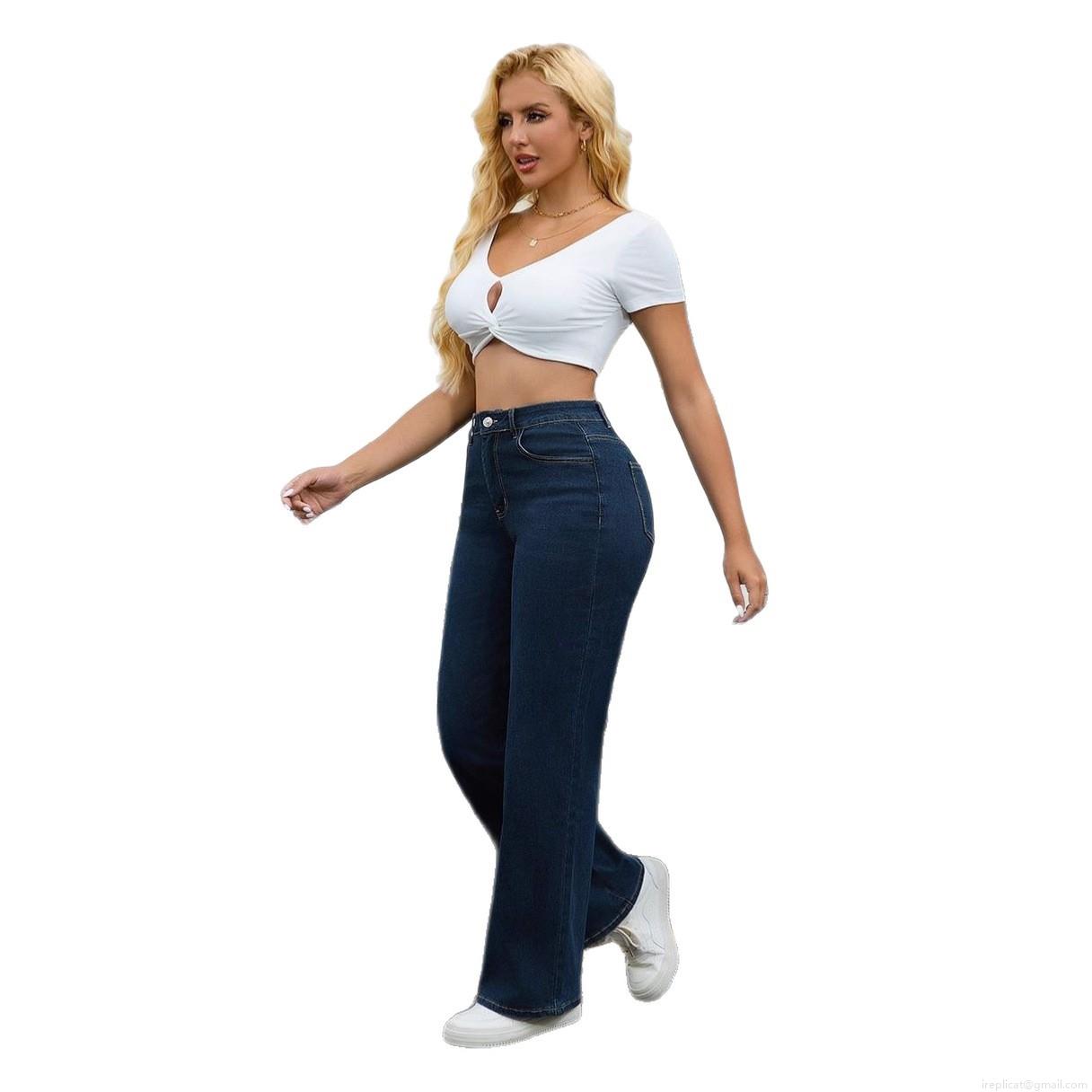 High Waisted Wide Leg Jeans For Women Vintage Deep Blue Straight Denim Long Pants Commute Casual Slimming Cotton Blend Trousers