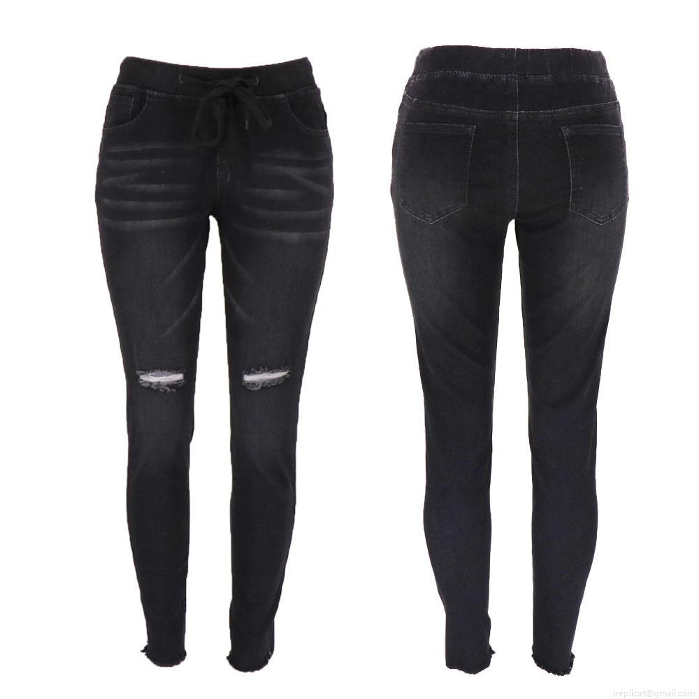 • Women High Waist Distressed Skinny Jeans With Drawstring Waist Cotton Blend High Stretch Ripped Denim Pencil Pants For Sexy Streetwear Casual Dailywear