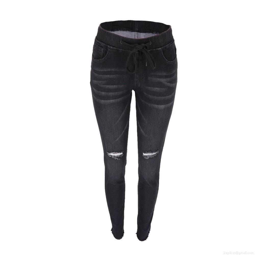 Drawstring, Ripped Decorations, Water Washing And Whitening, Knee Hole, Elastic Waistband