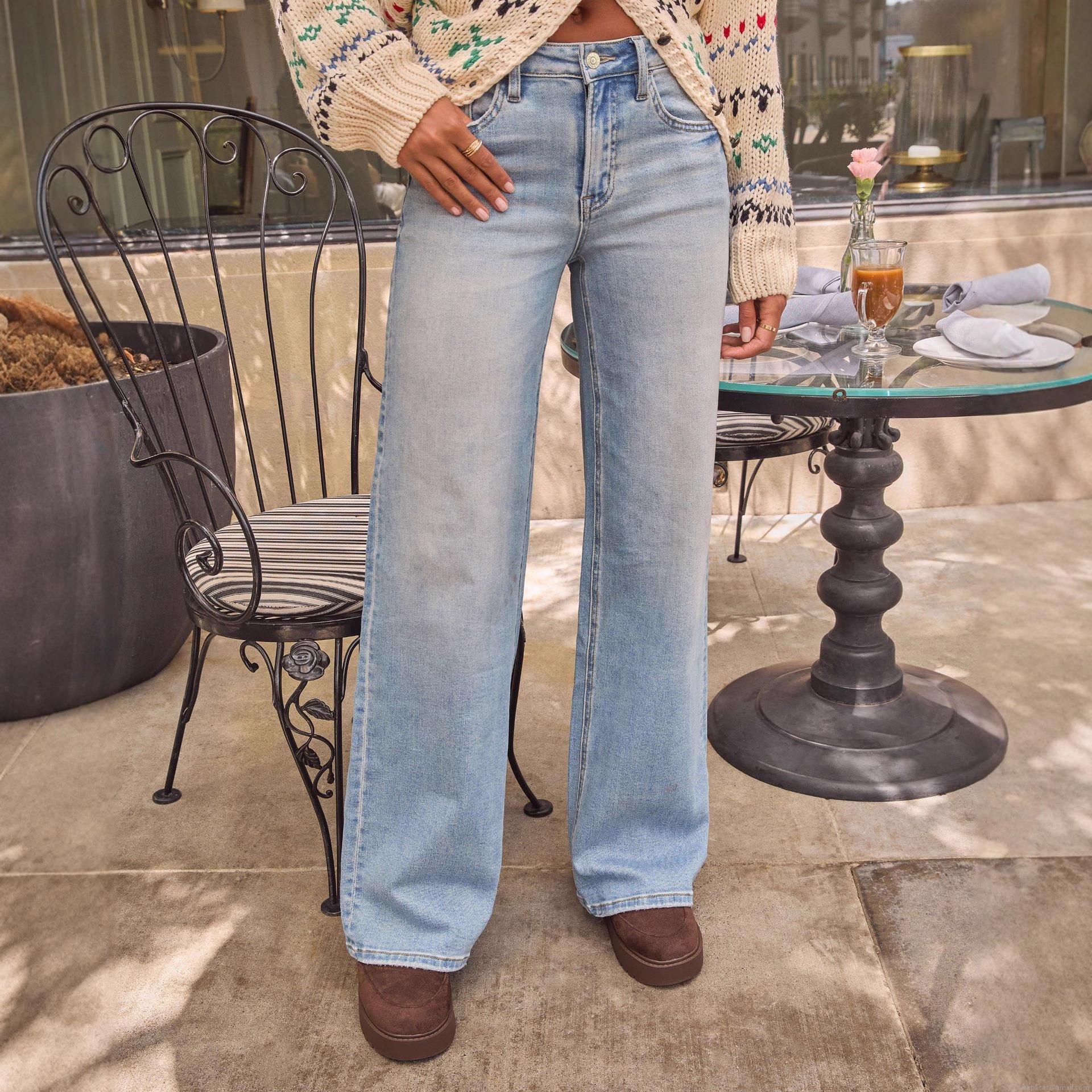 Solid Color, Water Washing Process, Water Washing And Whitening, High-waisted Design, Wide-leg Cut