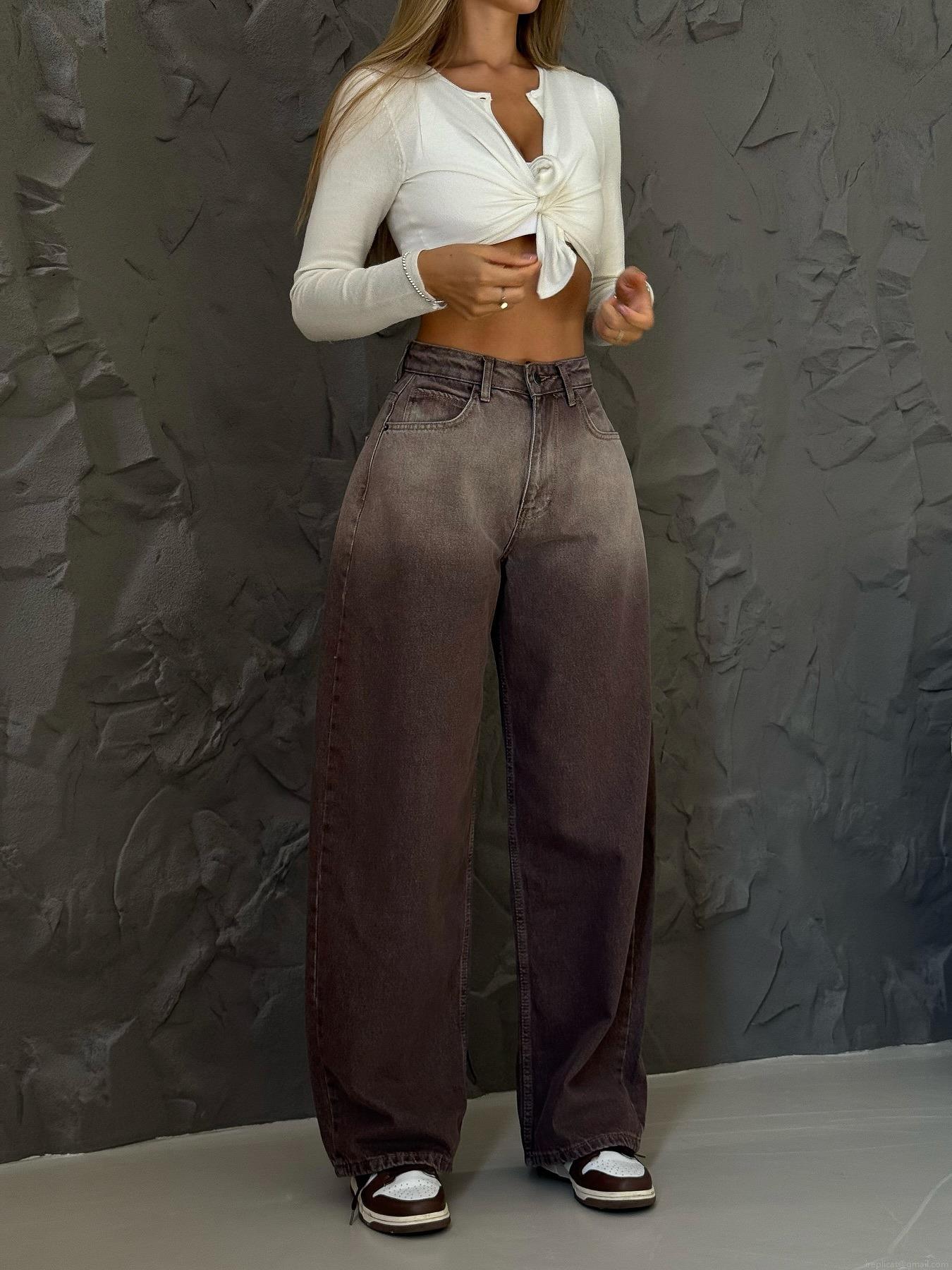 • Women High Waist Wide Leg Jeans Gradient Brown Vintage Washed Denim Trousers Loose Straight Casual Pants Streetwear Hot Girl Aesthetic Autumn Winter
