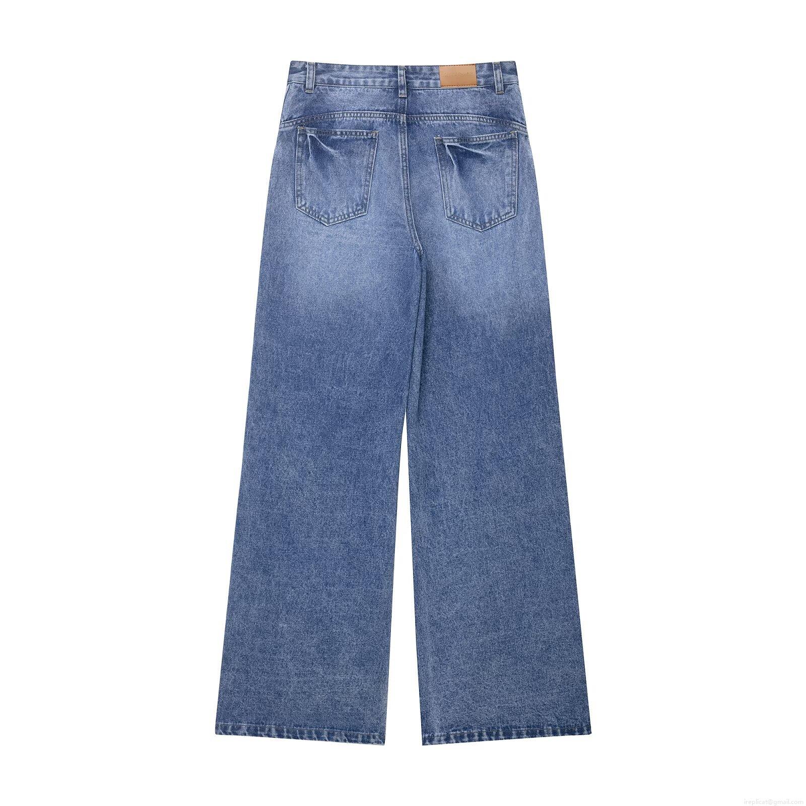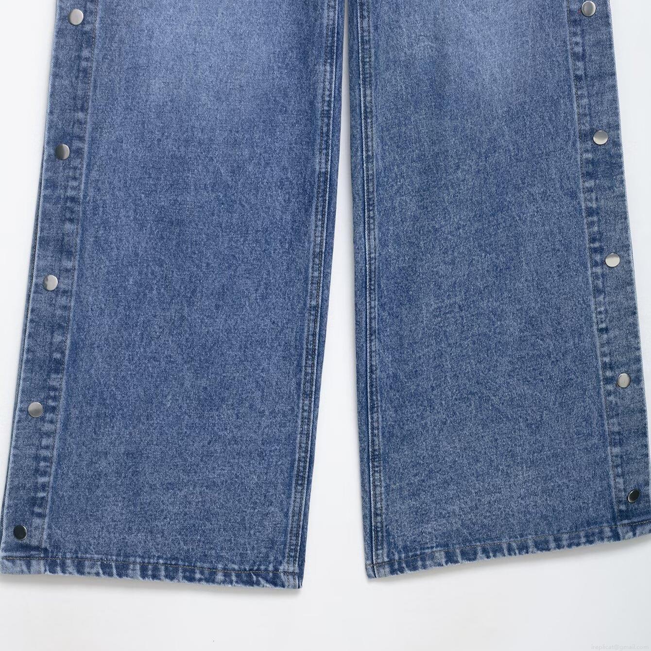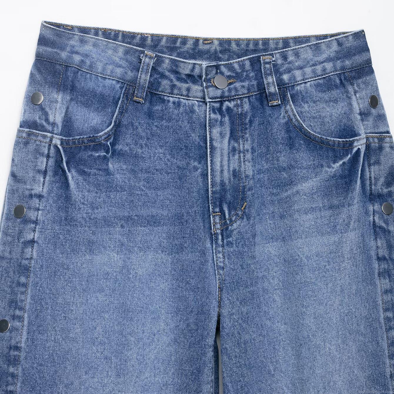 • Women High Waist Wide Leg Jeans Side Button Detail Loose Straight Denim Trousers Casual Summer Fashion Blue Denim Pants For Women