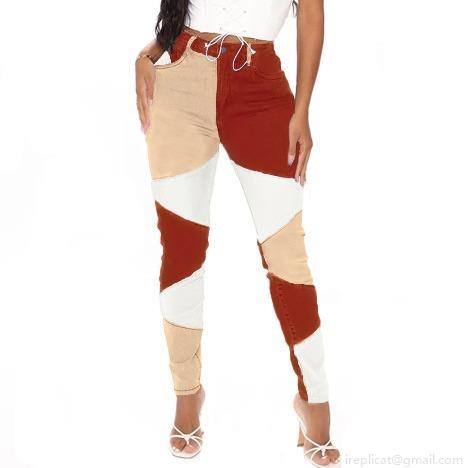 Women High Waisted Patchwork Flare Jeans Cotton Blend Stretchy Color Block Denim Pants With Raw Edge Distressed Bell Bottom Trousers Urban Streetwear Fashion