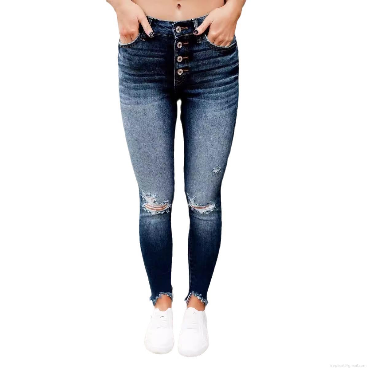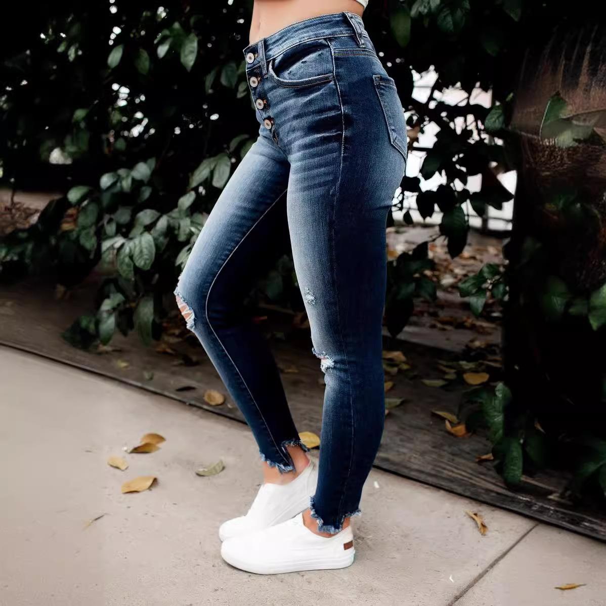 • Women High Waisted Ripped Skinny Jeans Distressed Denim Cotton Blend Stretchy Slim Fit Pants With 5-Button Fly And Raw Hem Streetwear Casual Daily Wear