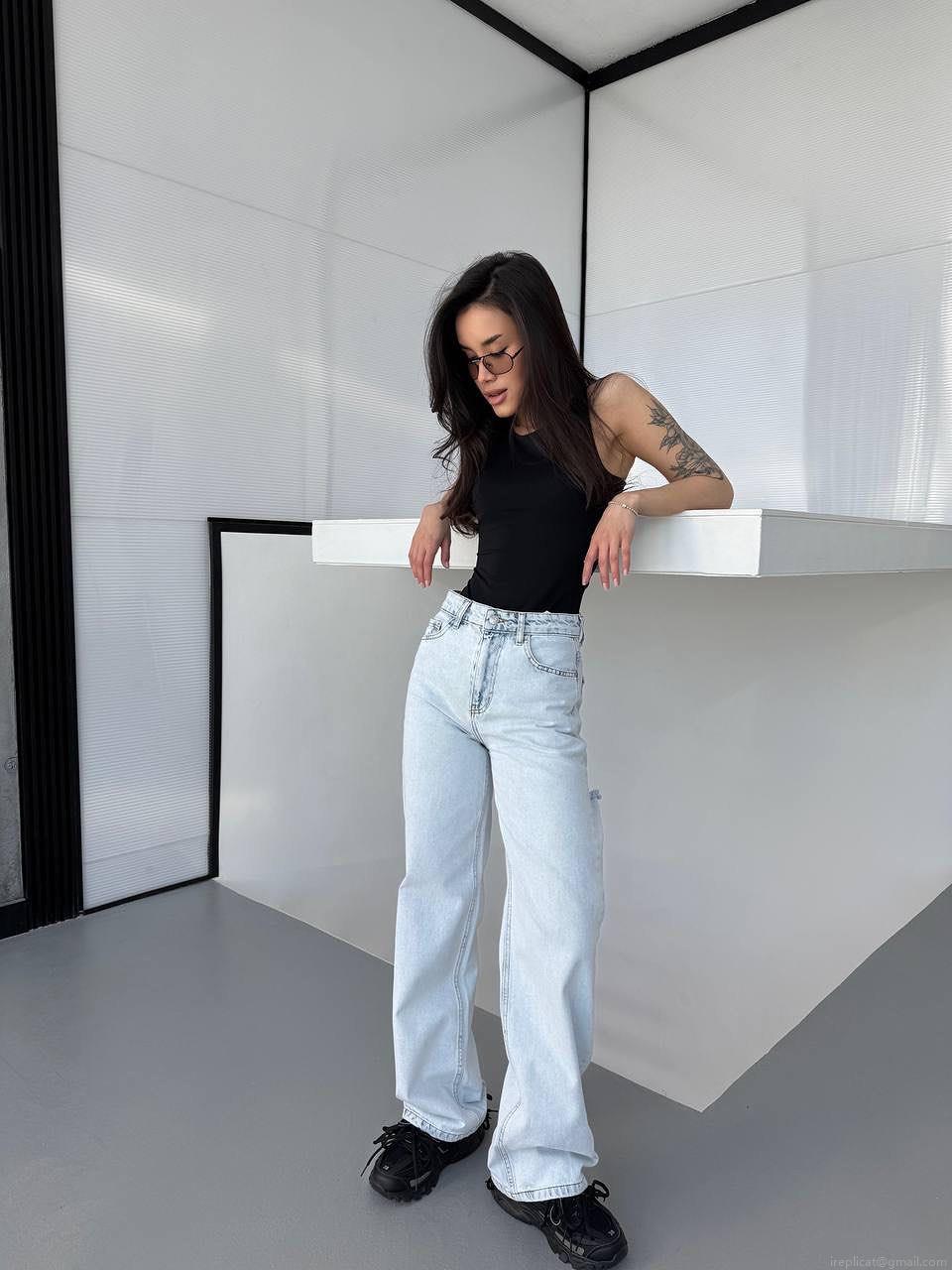 • Women's American Classic Washed Distressed High Waist Wide Leg Jeans 100% Cotton Denim Trousers Sexy Hot Girl Streetwear Straight Drape Long Pants