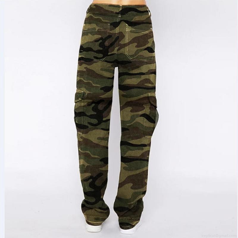 • Women's Camouflage Cargo Pants Cotton Blend Multi-Pockets High Waisted Straight Leg Denim Trousers Streetwear Fashion Loose Camo Long Pants